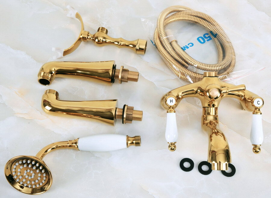 как выглядит Gold Brass Bath Bathtub Clawfoot Tub Faucet W/ Hand Shower Deck Mounted ena132 фото
