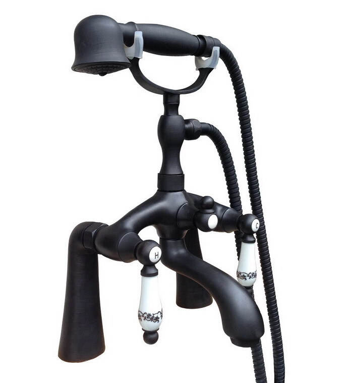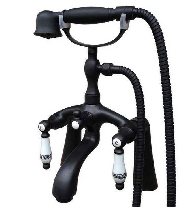 как выглядит Black Oil Rubbed Brass Clawfoot Tub Faucet W/ Hand Shower Deck Mounted etf513 фото