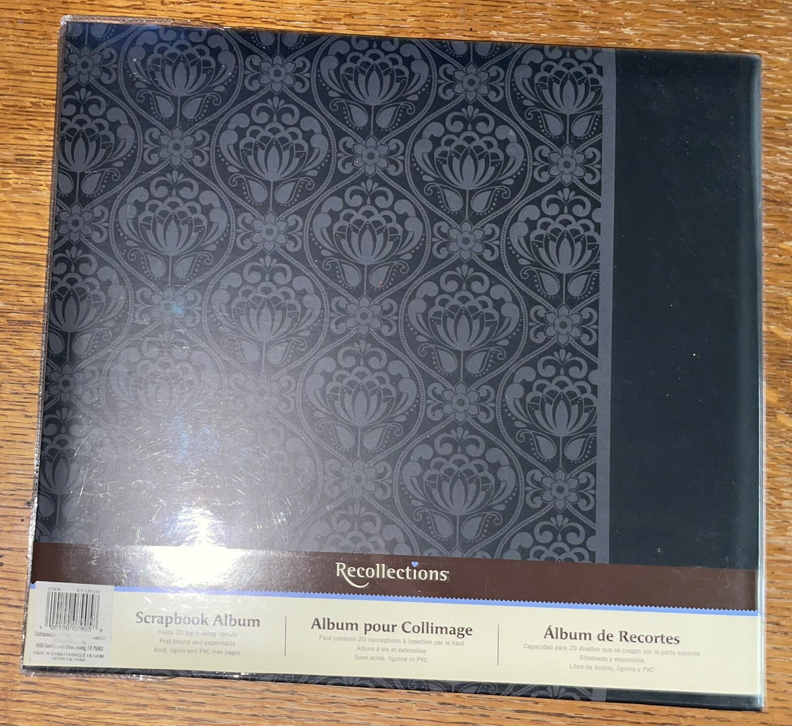 Recollections Black Grey Photo Memory Scrapbook Album 12x12 Flourished Floral