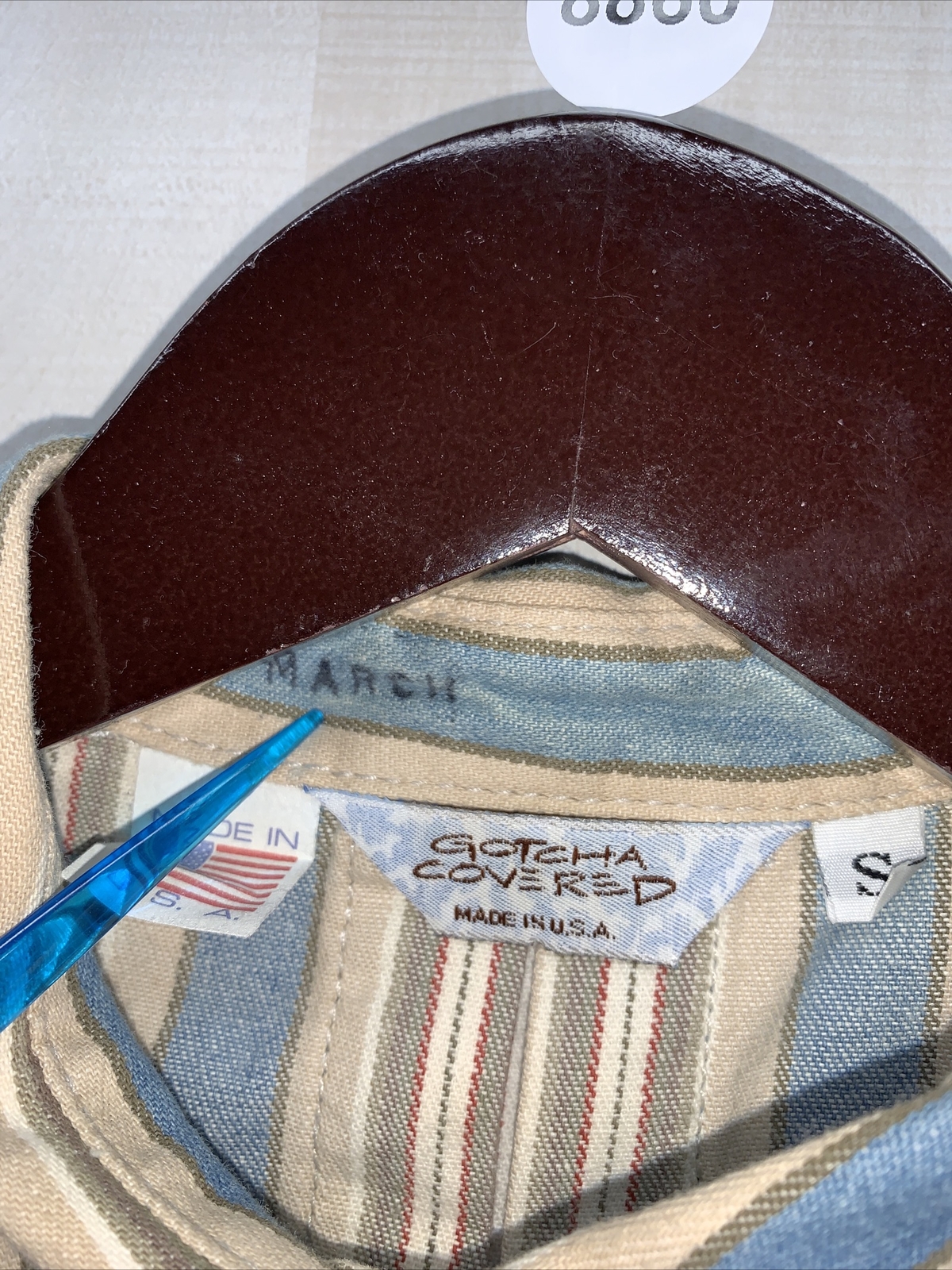как выглядит Vintage 1990s Gotcha Covered Unisex Adult Striped Canvas Button Up Shirt-8860 фото