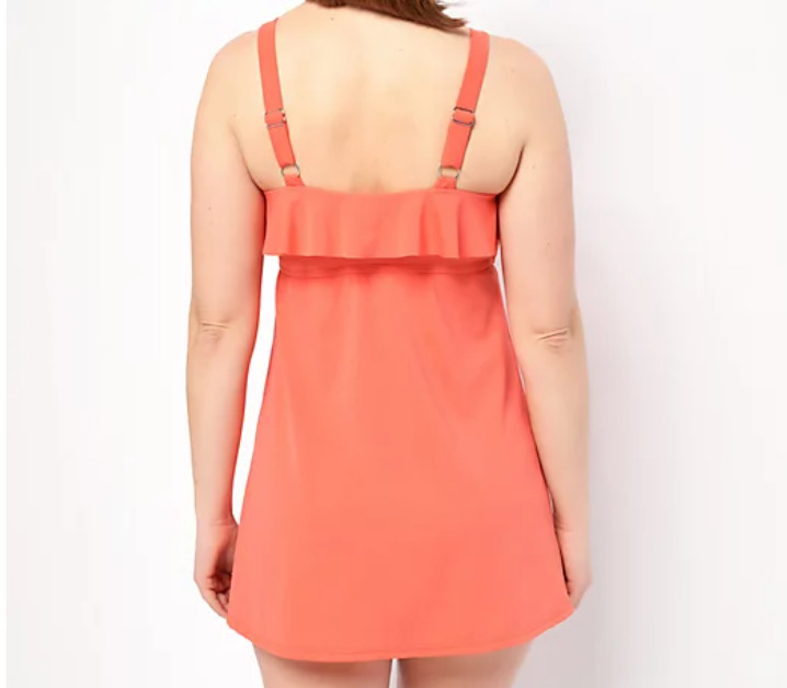 Denim Co. - Beach Ruffle Neckline Swim Dress - Navy Blue