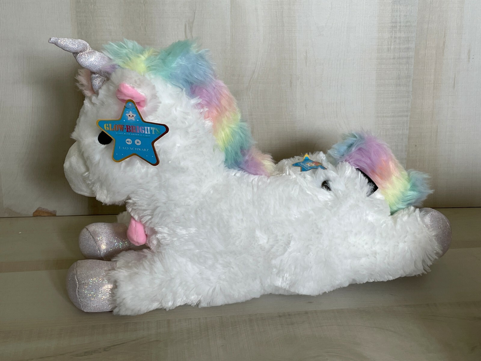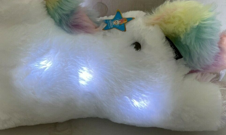 NWT FAO Schwarz 15 Unicorn Glow Brights Stuffed Animal w Sound Lights Squeeze