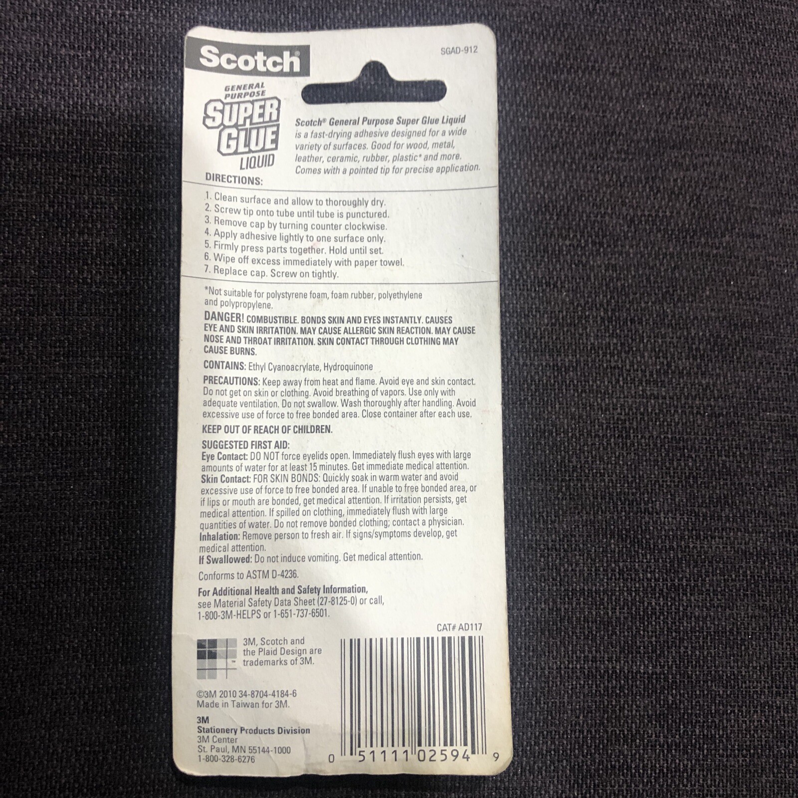 Scotch Super Glue Liquid 2/Pkg .07oz 051111025949