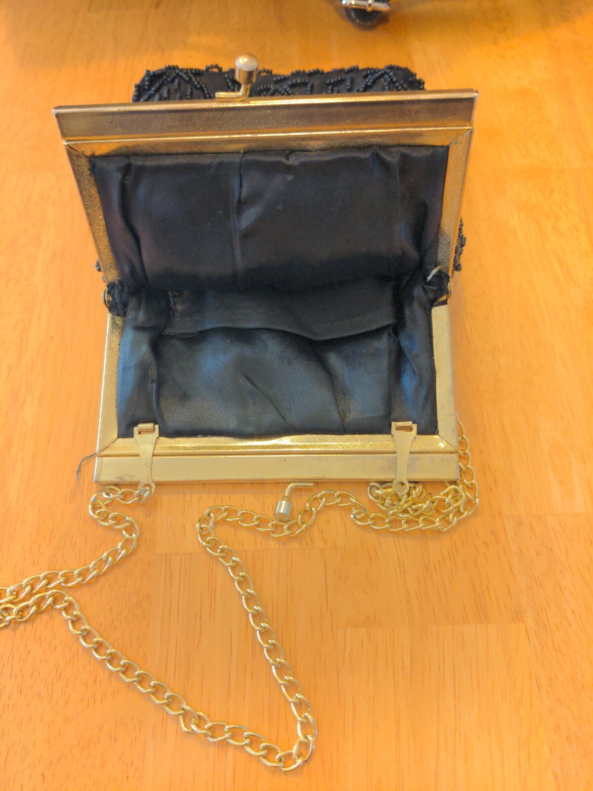 как выглядит Vintage Black Beaded Evening Purse with chain strap. Used фото