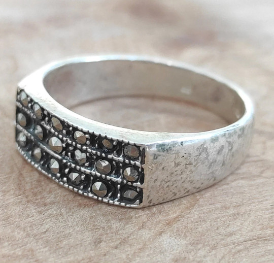 как выглядит Sterling Silver Ring,A0378R-56, 925 Sterling Silver, Marcasite Stone Ring, Gray фото