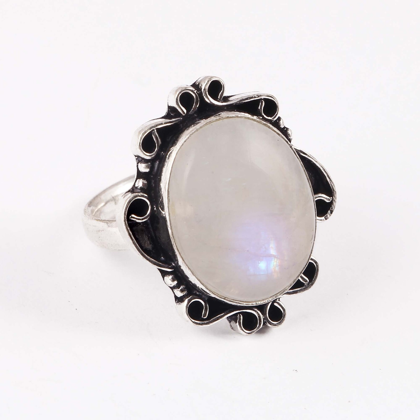 как выглядит GS Ring White Rainbow Moonstone Cabochon Designer Ring Fashion Item Jewelry фото
