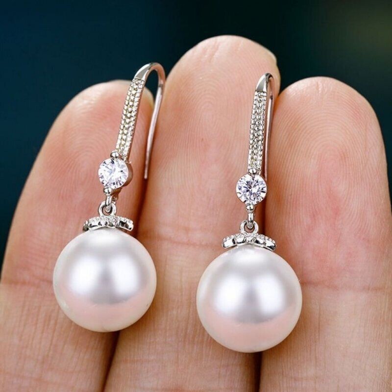 как выглядит Stunning New Silver Plated 10mm White Pearl Crystal Hook Dangle Drop Earrings фото