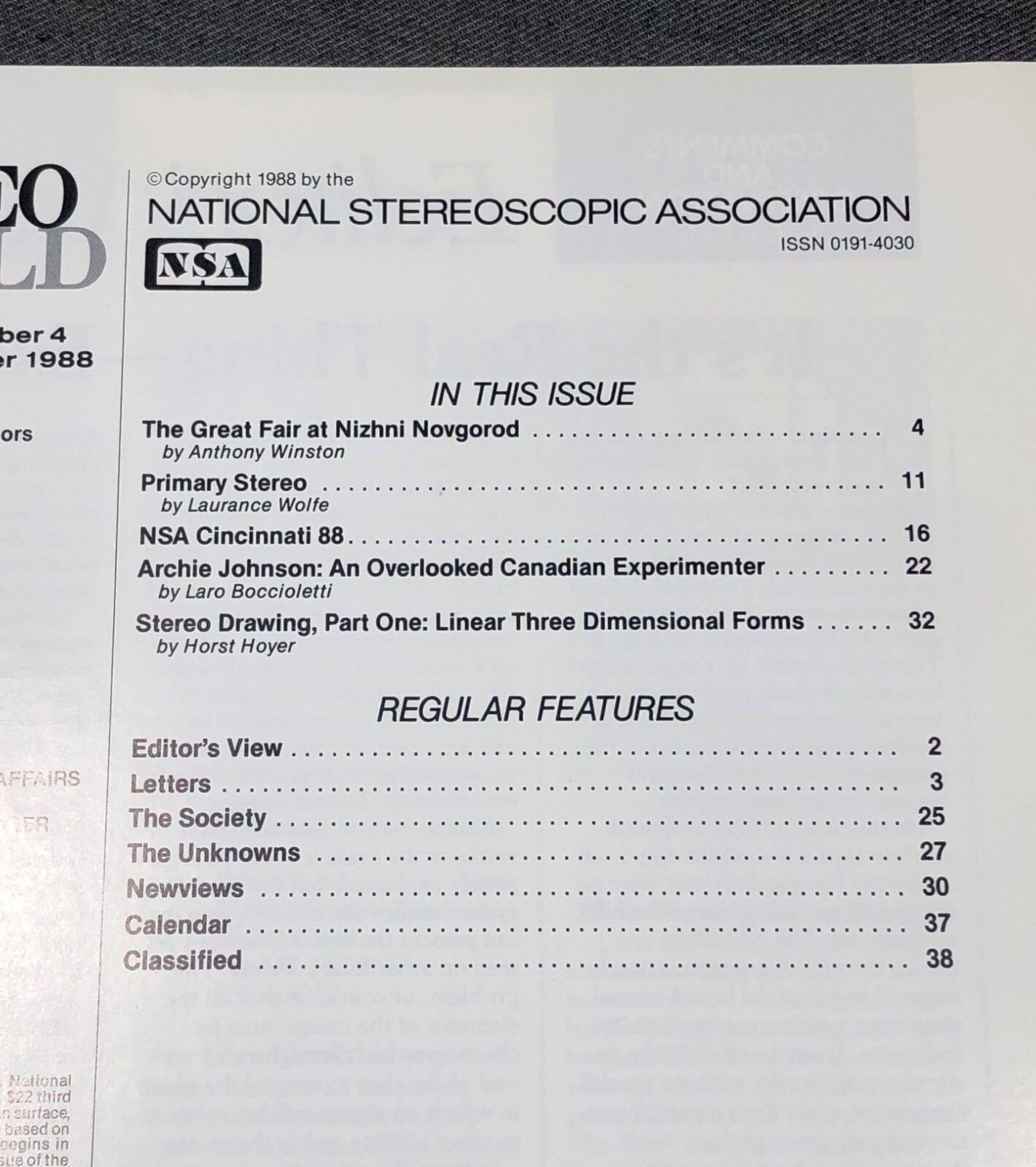 • Stereo World Magazine Sep/Oct 1988 NSA Cincinnati Primary Stereo Stereoviews