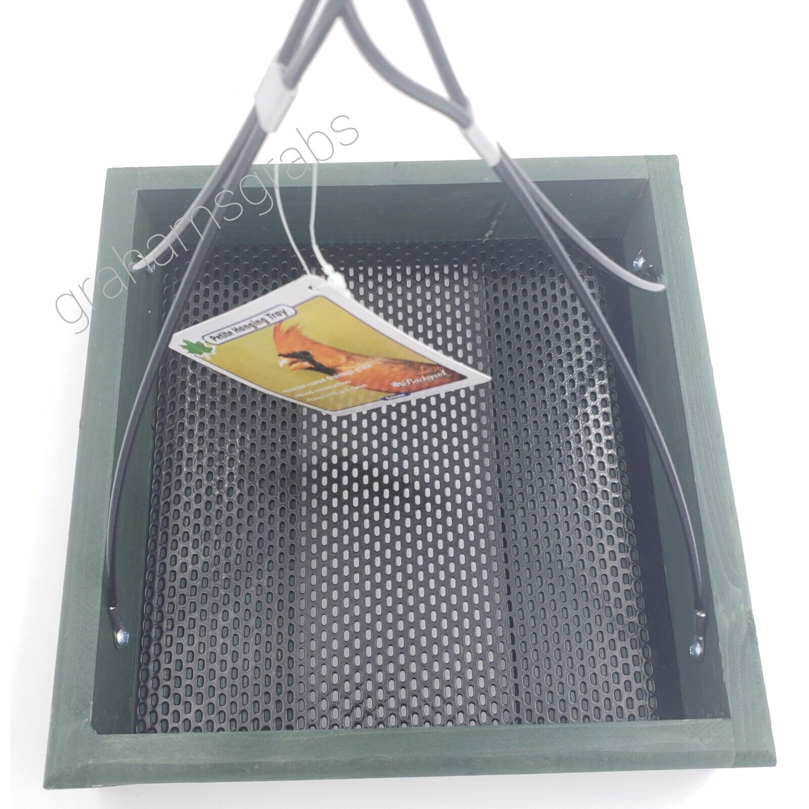 HANGING WOOD TRAY PLATFORM BIRD FEEDER PETITE GREEN MESH BOTTOM BE141 EASY CLEAN