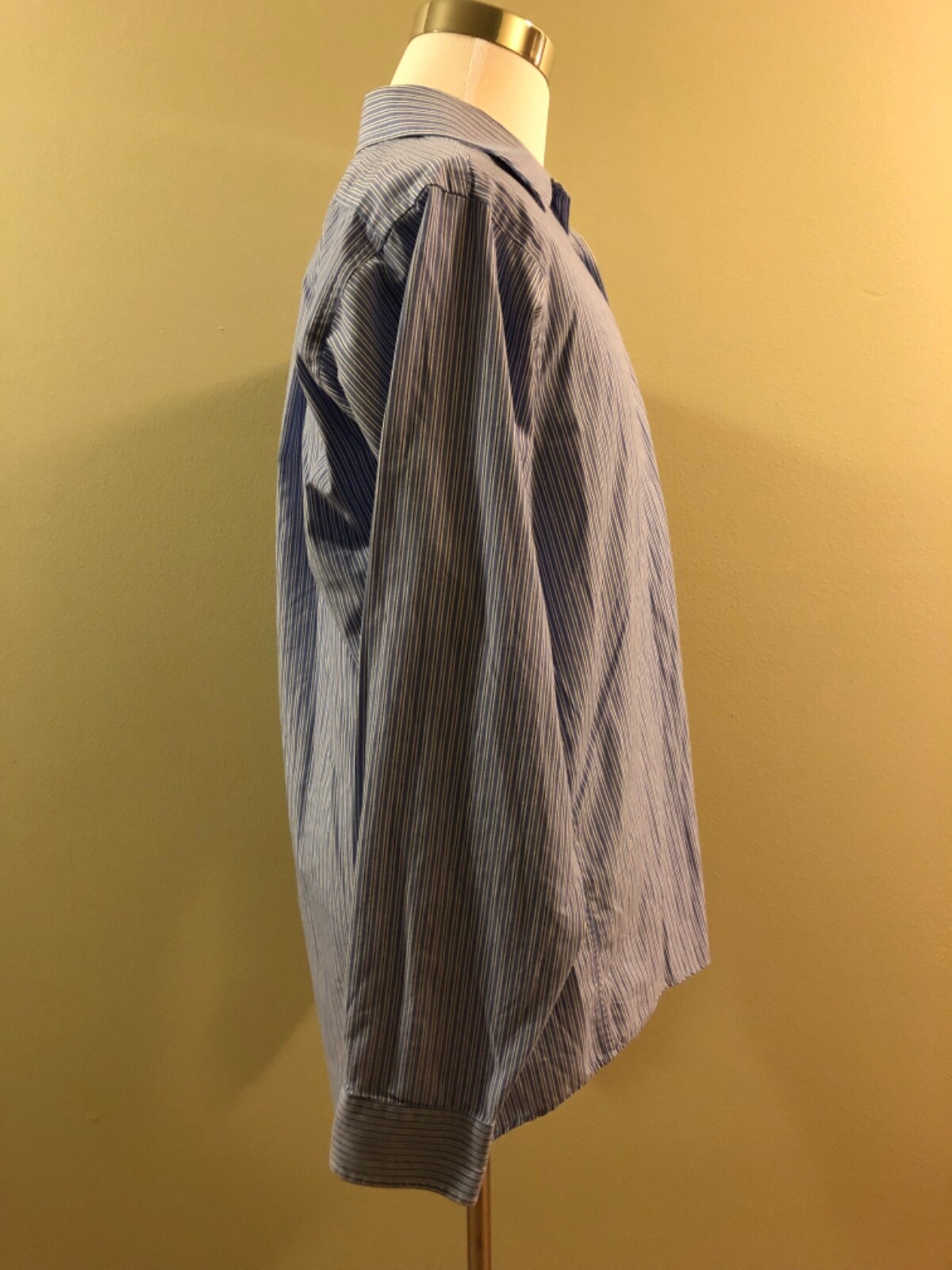 Men s Chaps Button Down Wrinkle Free Blue Striped Shirt, Large 16 16 1/2, 36-37