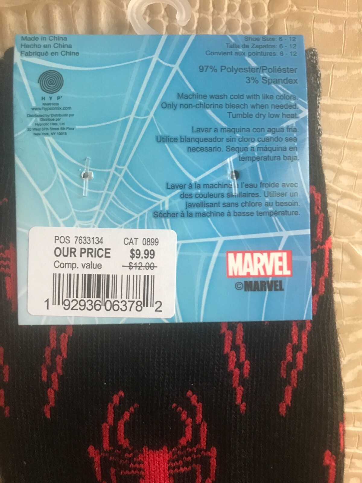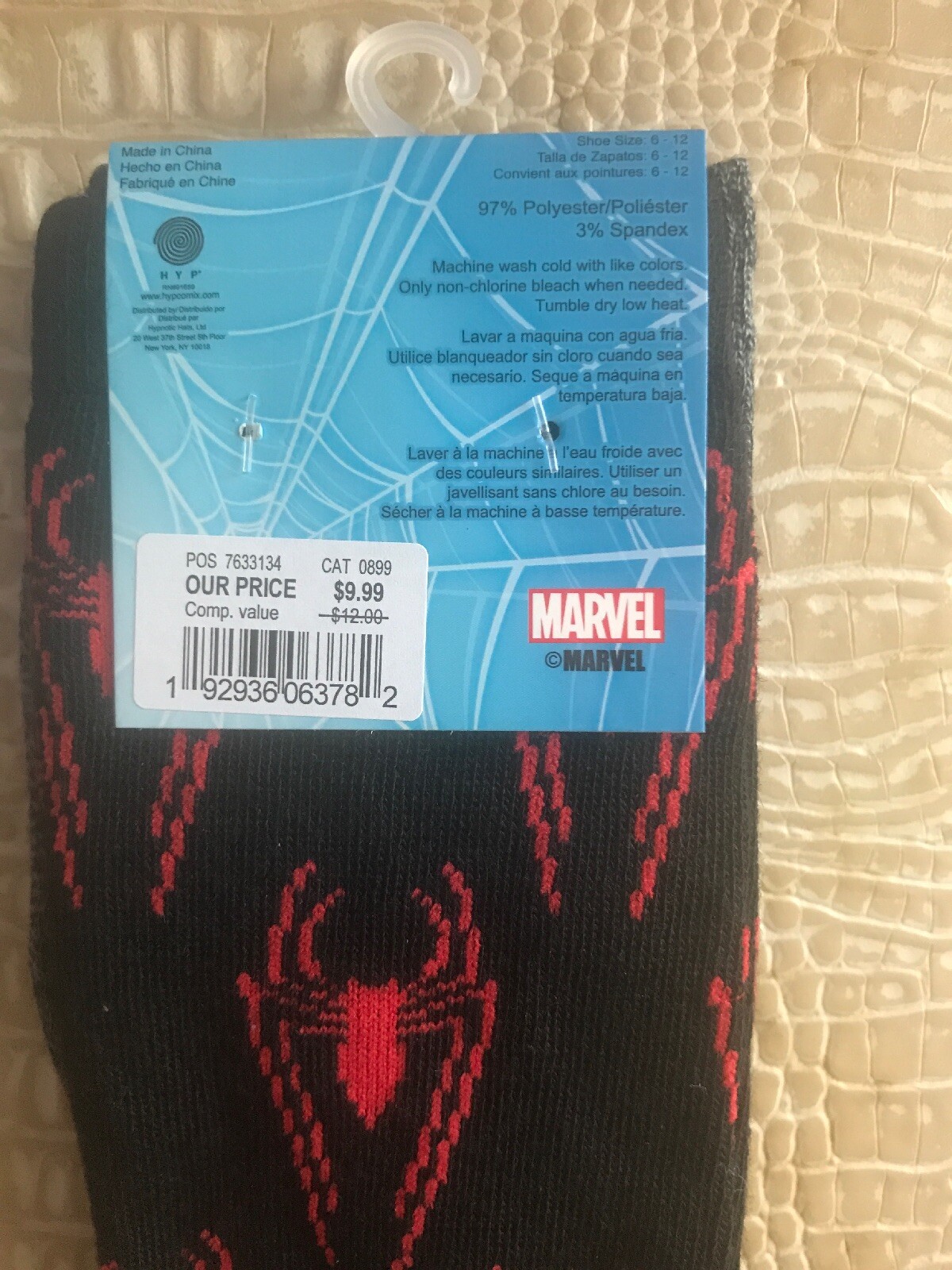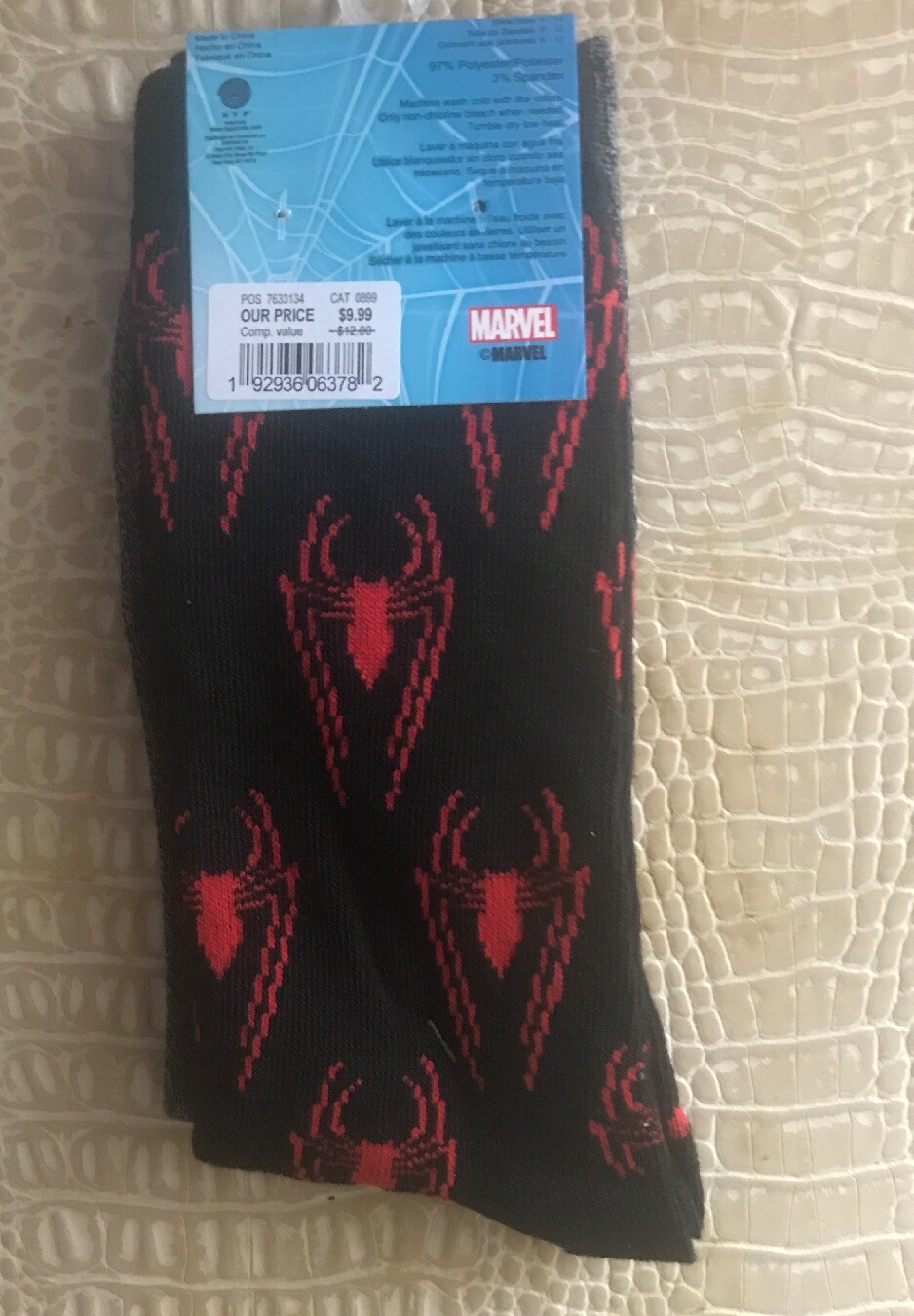 Marvel Spiderman Super Hero Socks 2 Pairs Shoe Size 6-12 Nwt