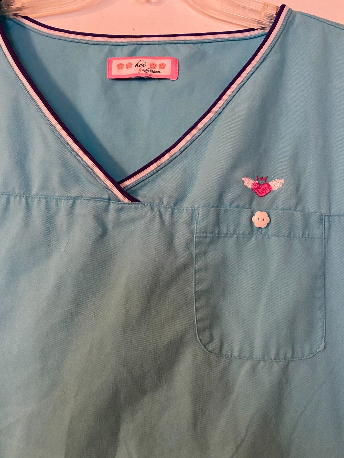 KOI BY KATHY PETERSON Ashley Scrub Top Winged Heart Pockets Women s