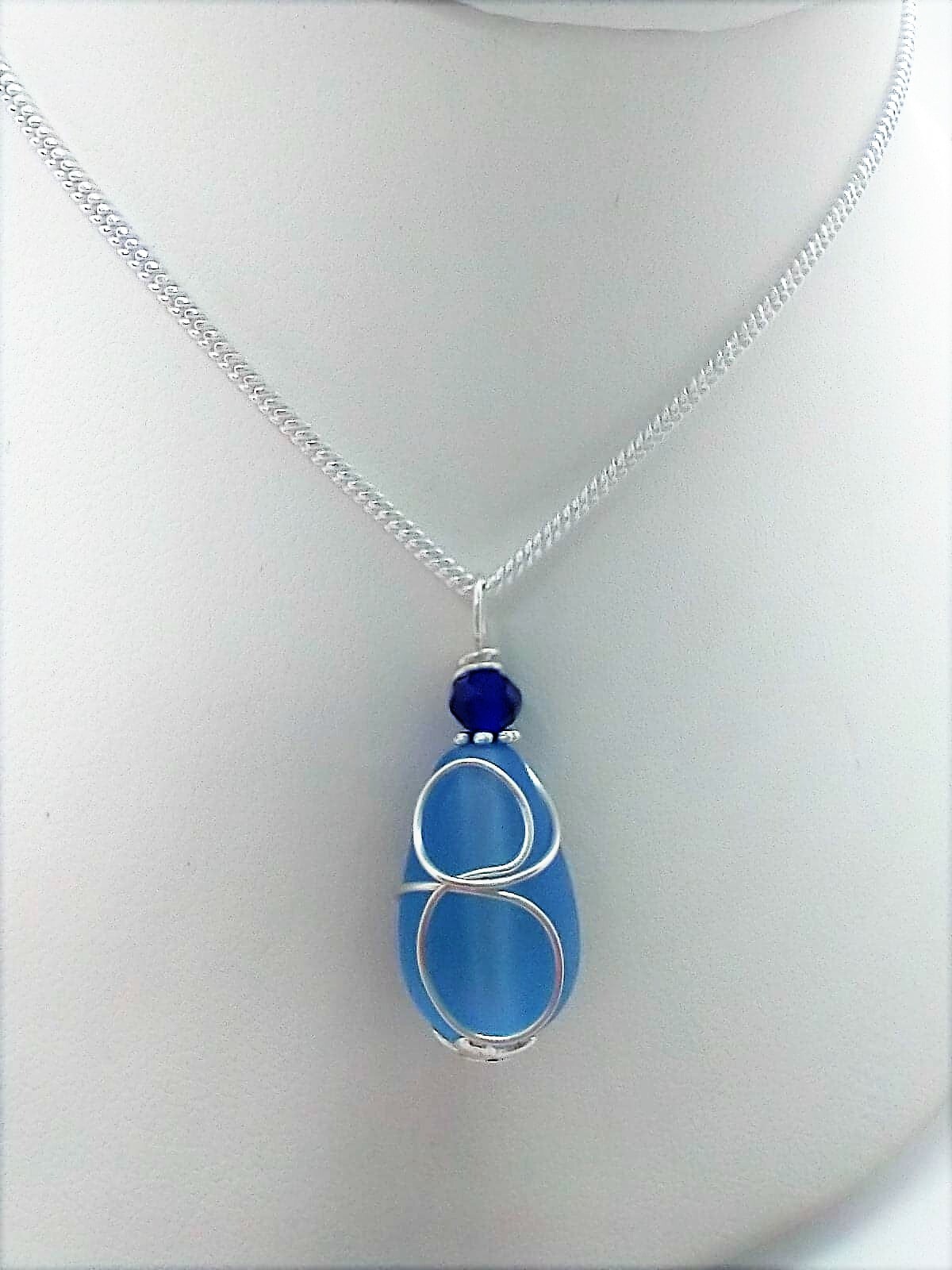 как выглядит Cobalt Blue "Loop" Sea Glass Pendant Silver Snake Chain Necklace 18 Inch фото