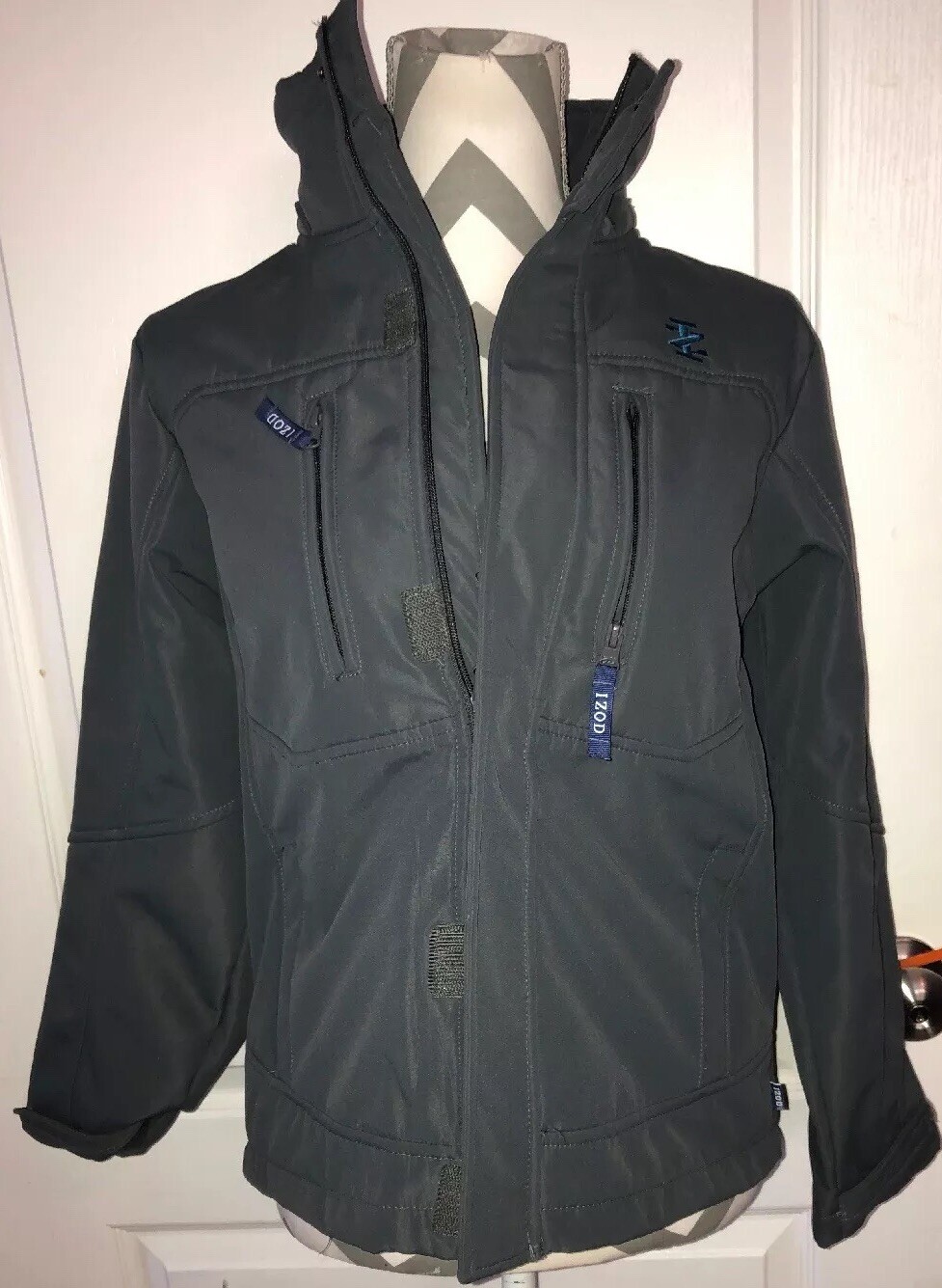Boys Youth Izod Soft Shell Jacket Hook Loop Zip Front 14-16 Grey Pockets IZD007