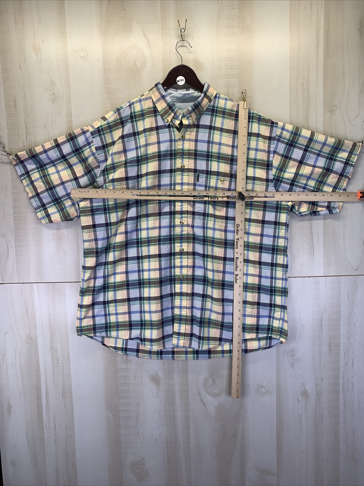 как выглядит Vintage IZOD Colorful Cotton Short Sleeve Button Down Shirt Large-10182 фото
