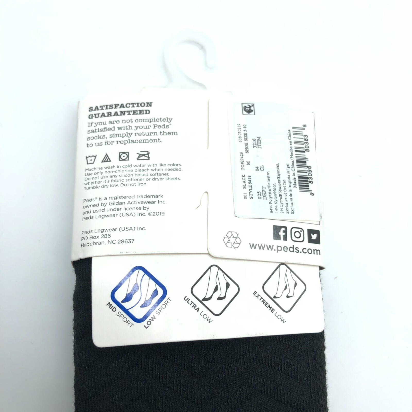 Peds Womens Mid Sport Liner Socks 2 Pair Cushioning Breathable Mesh Black 5-10