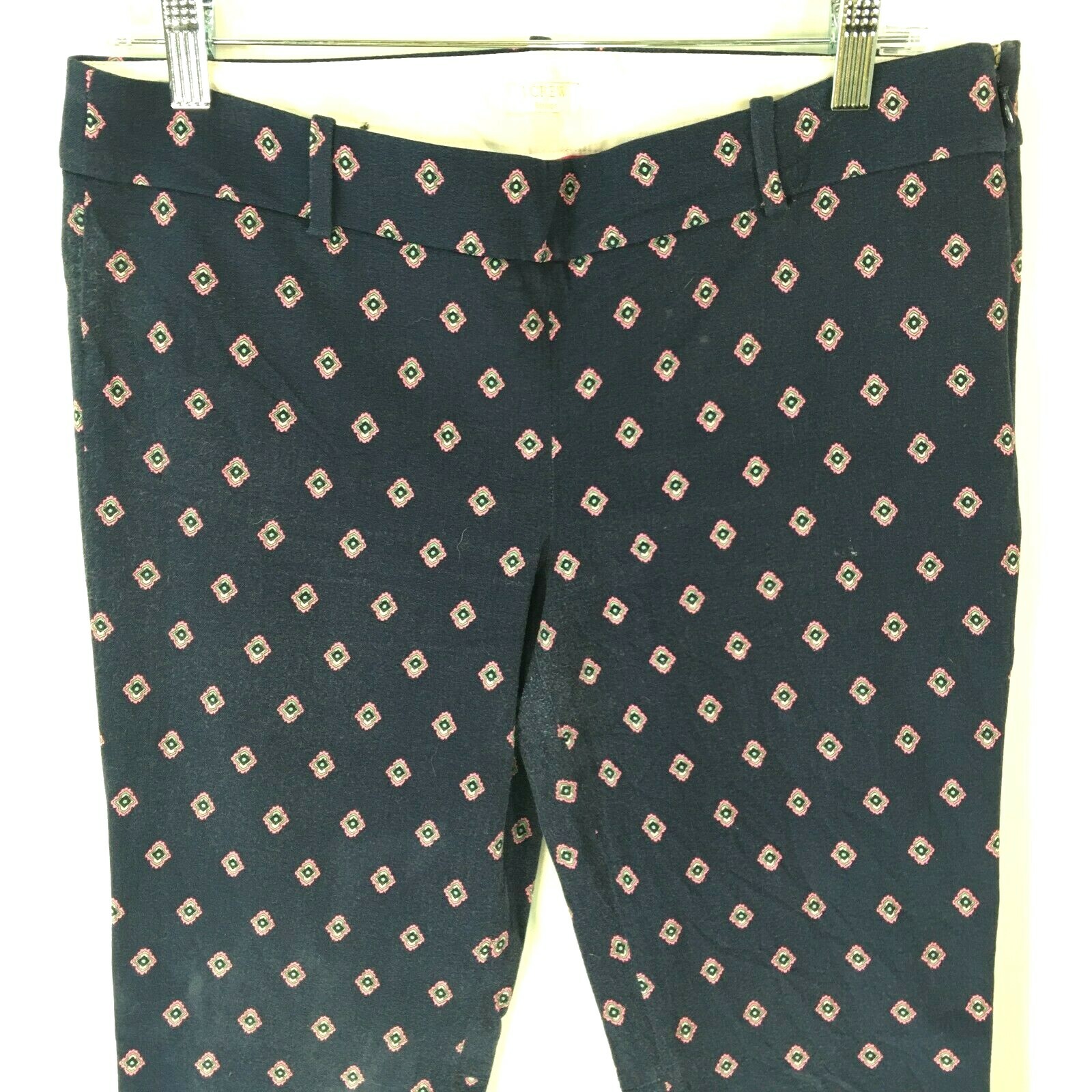 VTG J Crew Womens Mid Rise Casual Flat Front Floral Navy Blue Capri Pants Size 8