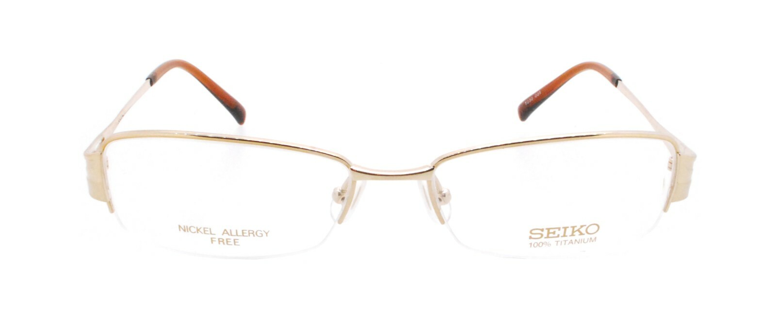 New Authentic SEIKO T230 001 Japan Gold Titanium Half Rim Eyeglasses Frames NOS