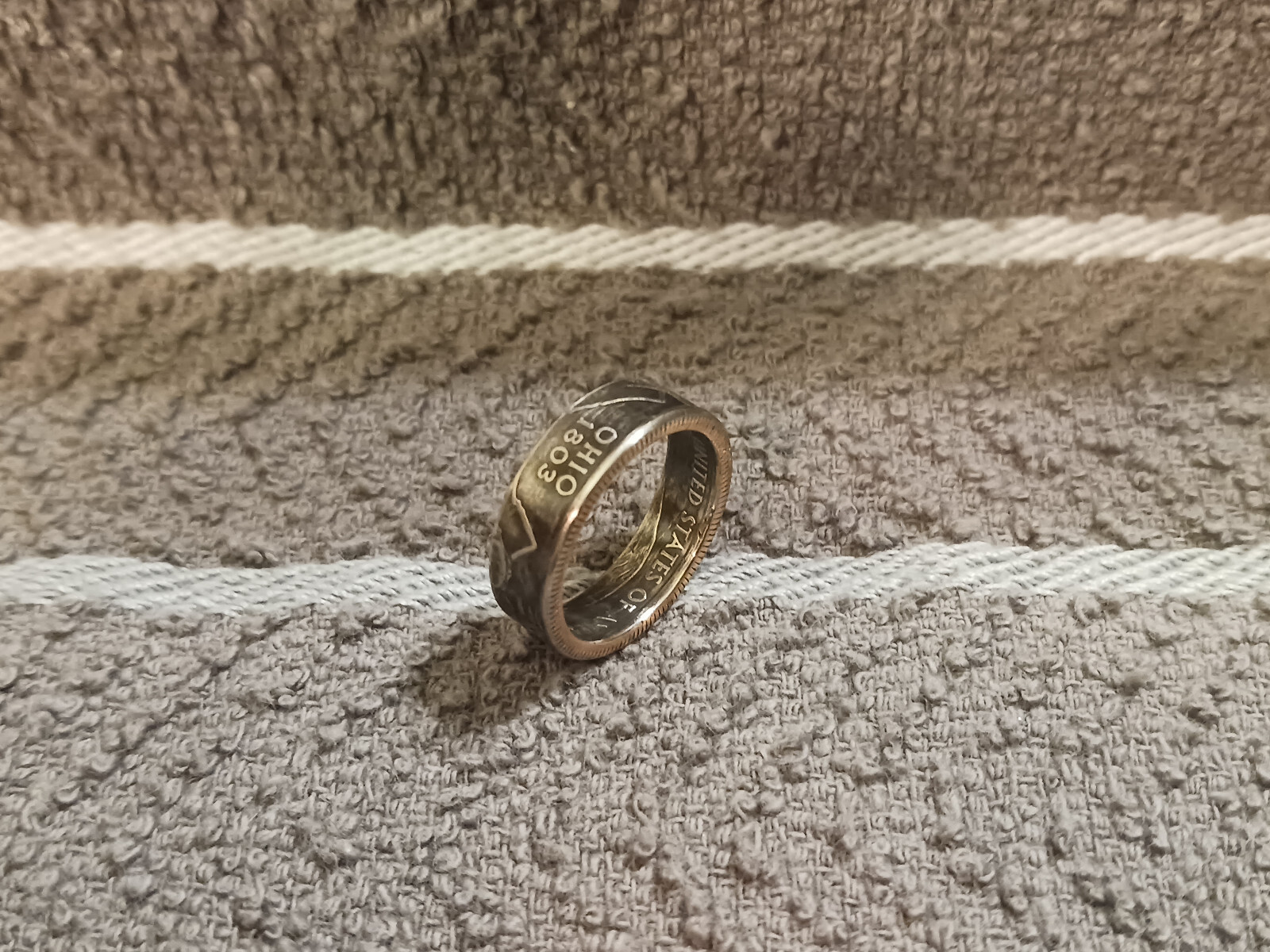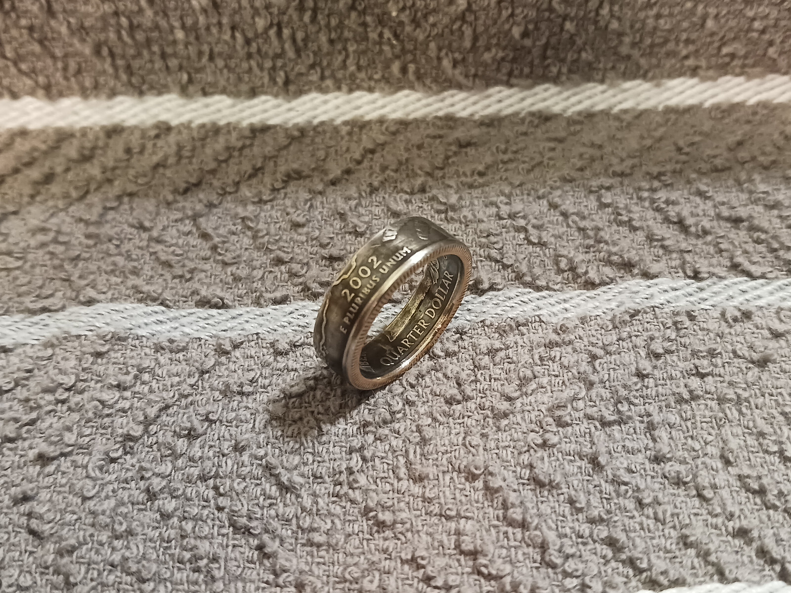 Ohio Handcrafted Washington Quarters coin ring, size 7 2002