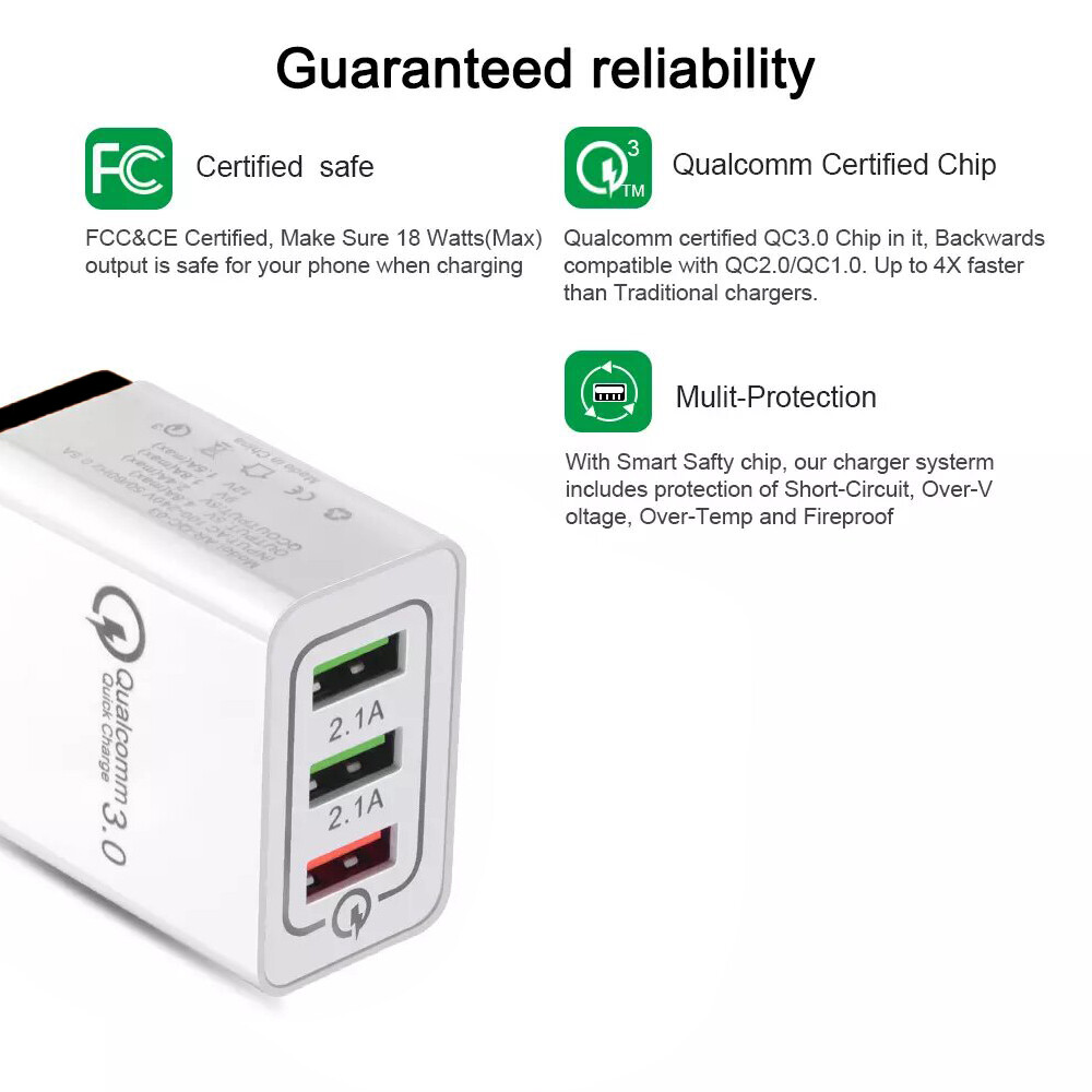 Multi Port USB Charger Fast Wall Charging with QC 3.0 for iPhone Samsung S20 LG