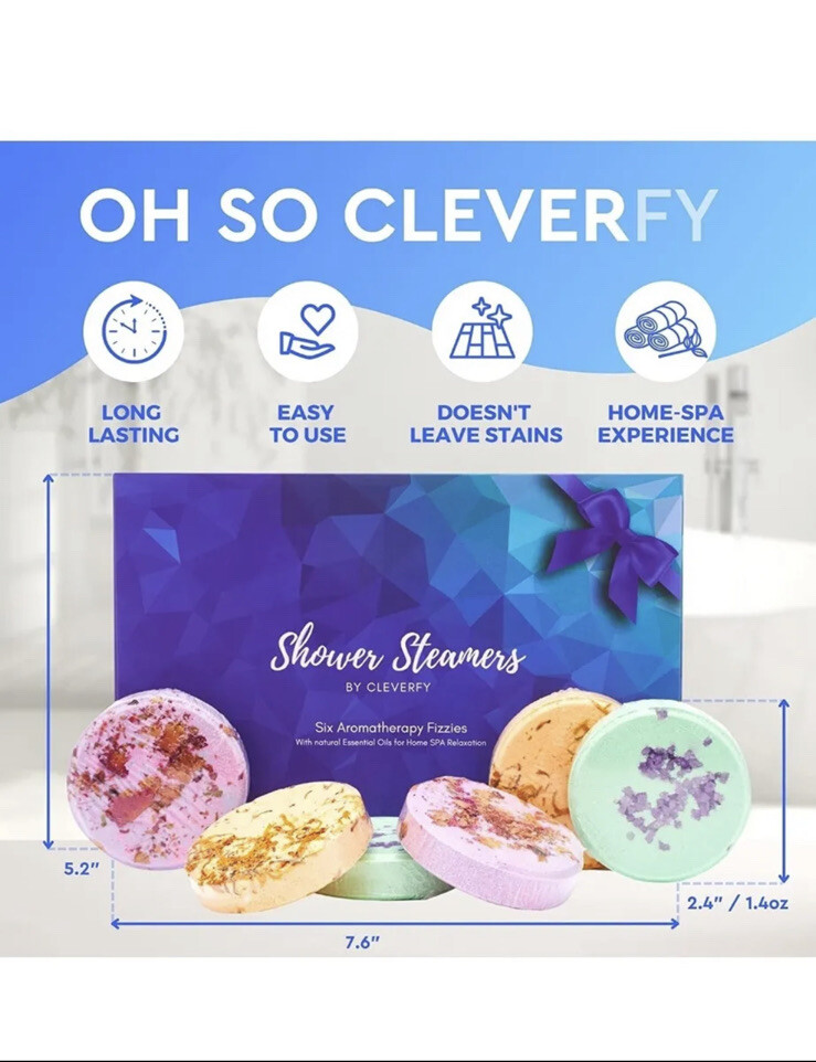New Sealed Cleverfy Shower Steamers Aromatherapy Variety Pack of 6 Shower Bombs