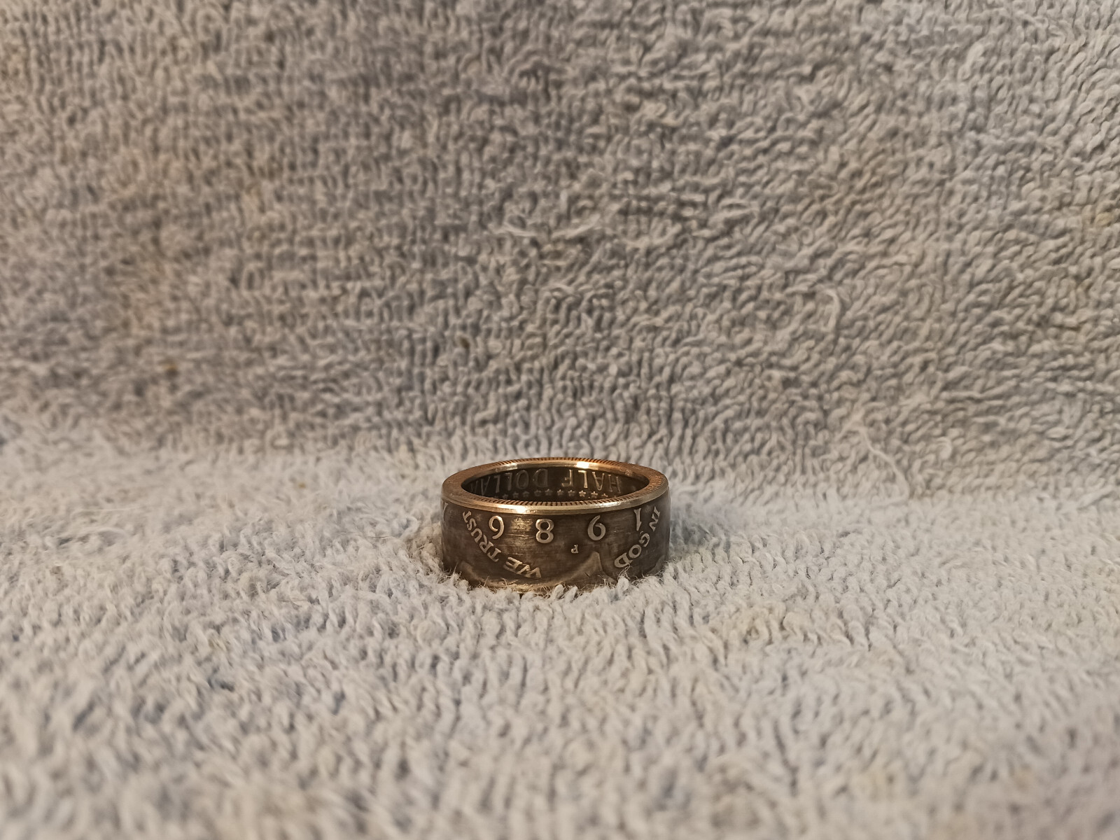 1986 Kennedy Half Dollars size 11 coin ring handmade mixed metals C