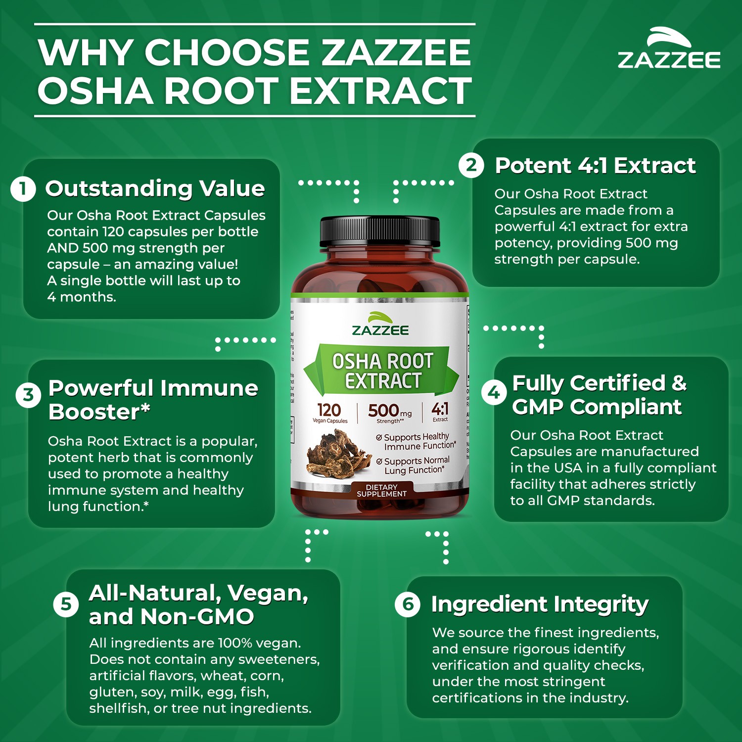 Osha Root Extract 120 Capsules Vegan 500 mg Strength Potent 4:1 Immune Support