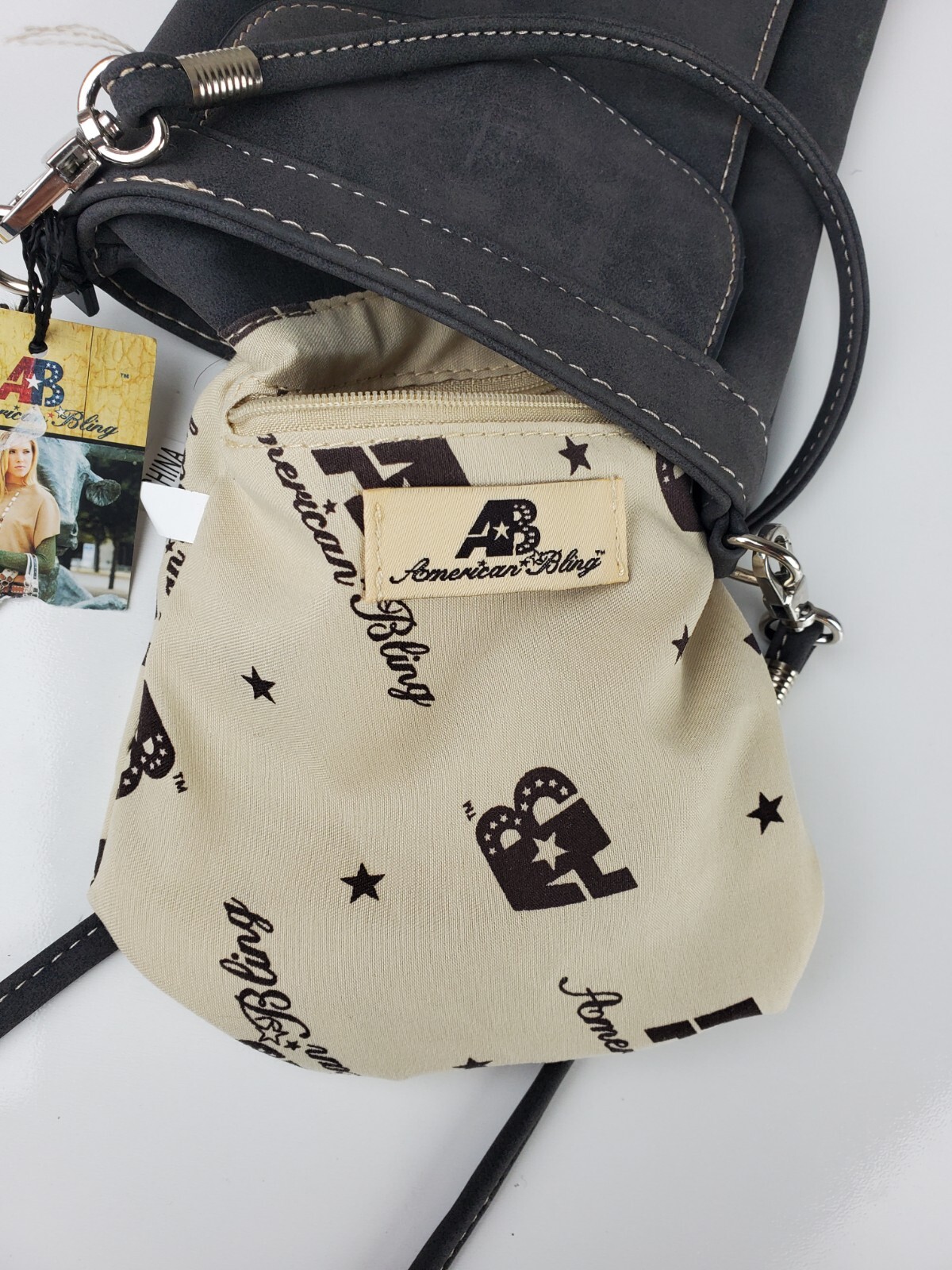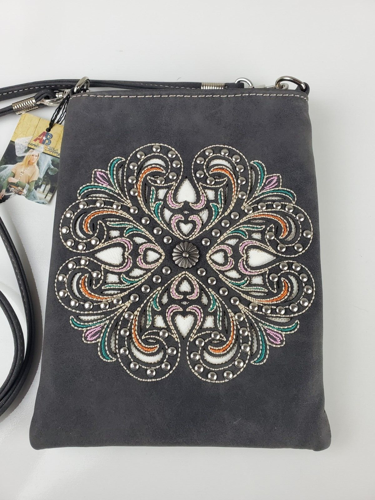 как выглядит American Bling Crossbody Purse Western Cowgirl Bling Hearts Studded 8"x6" NWT фото