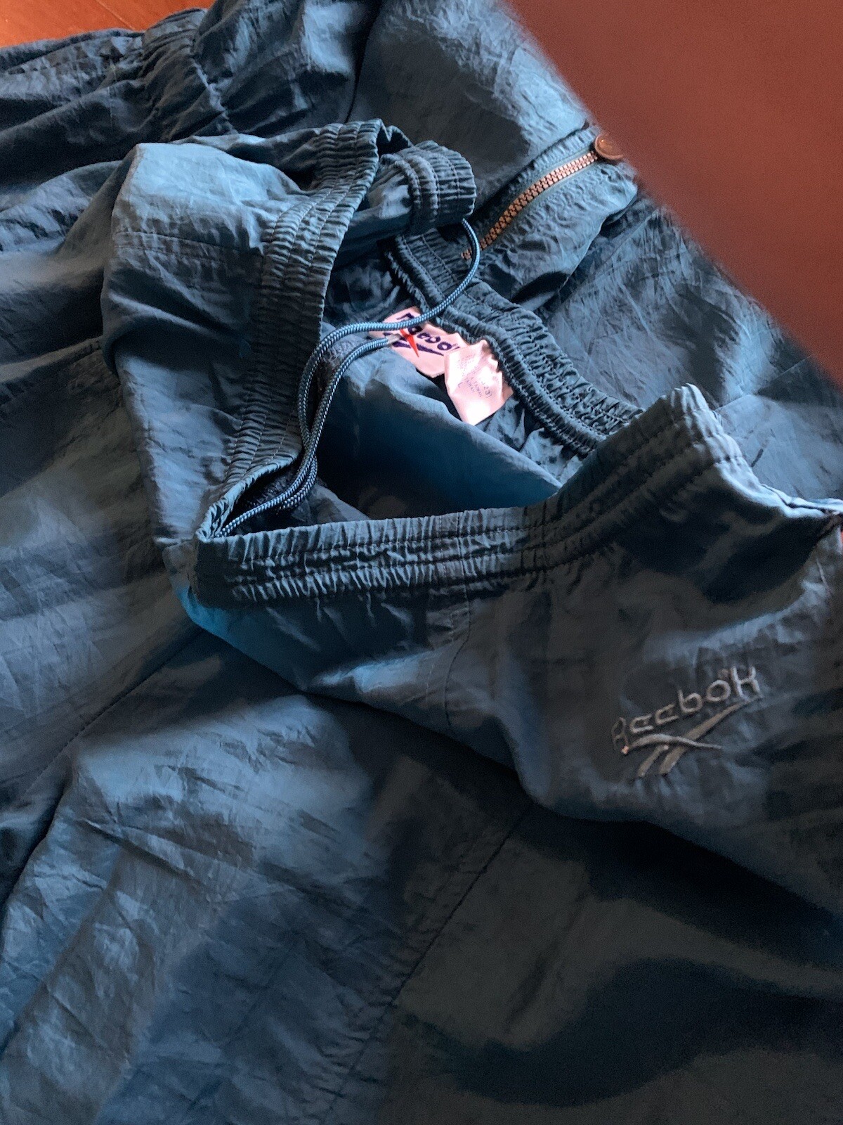 как выглядит Reebok Windbreaker Runing Jacket Pants Set Blue Unisex Size Large Full Zip фото