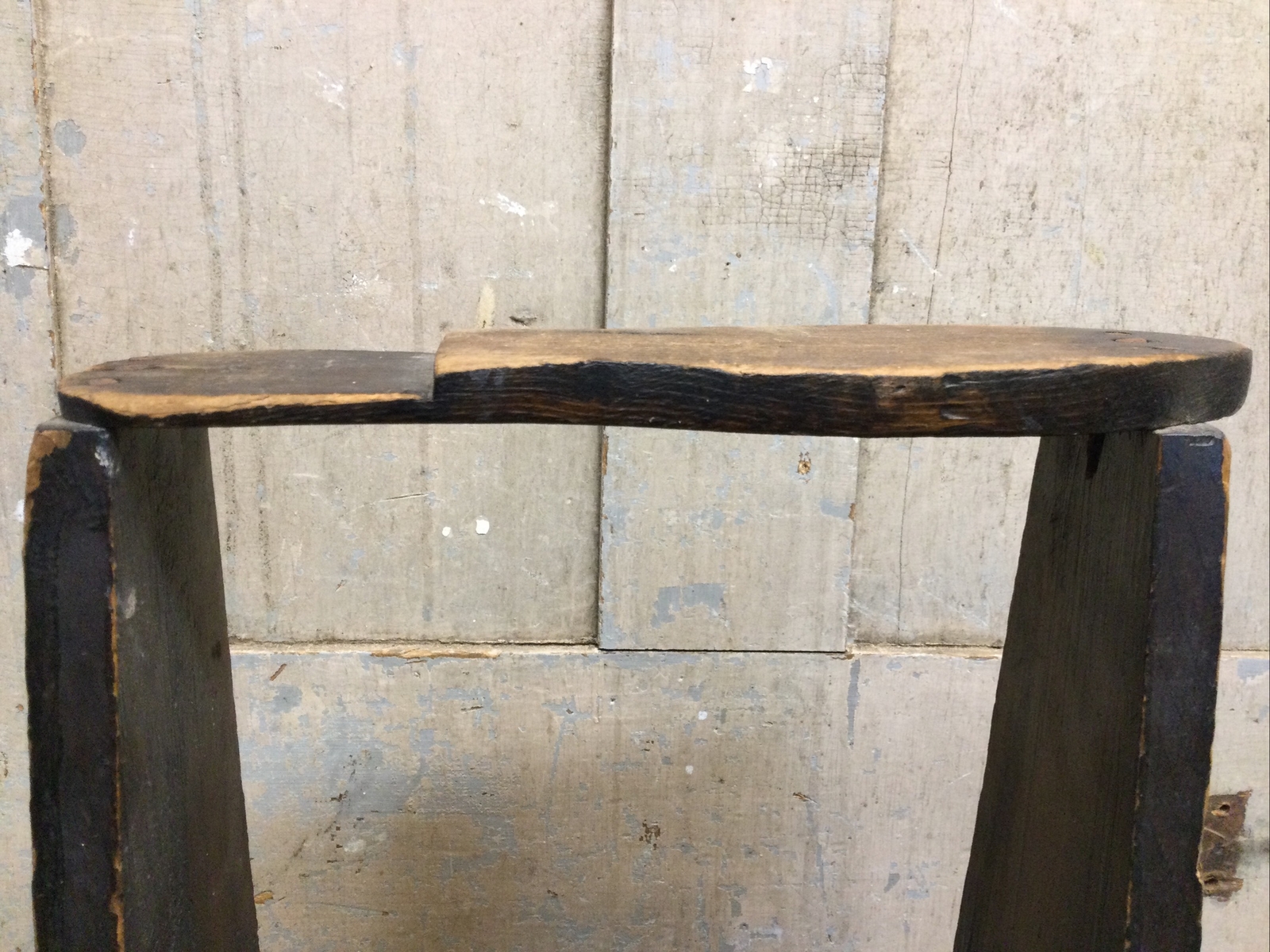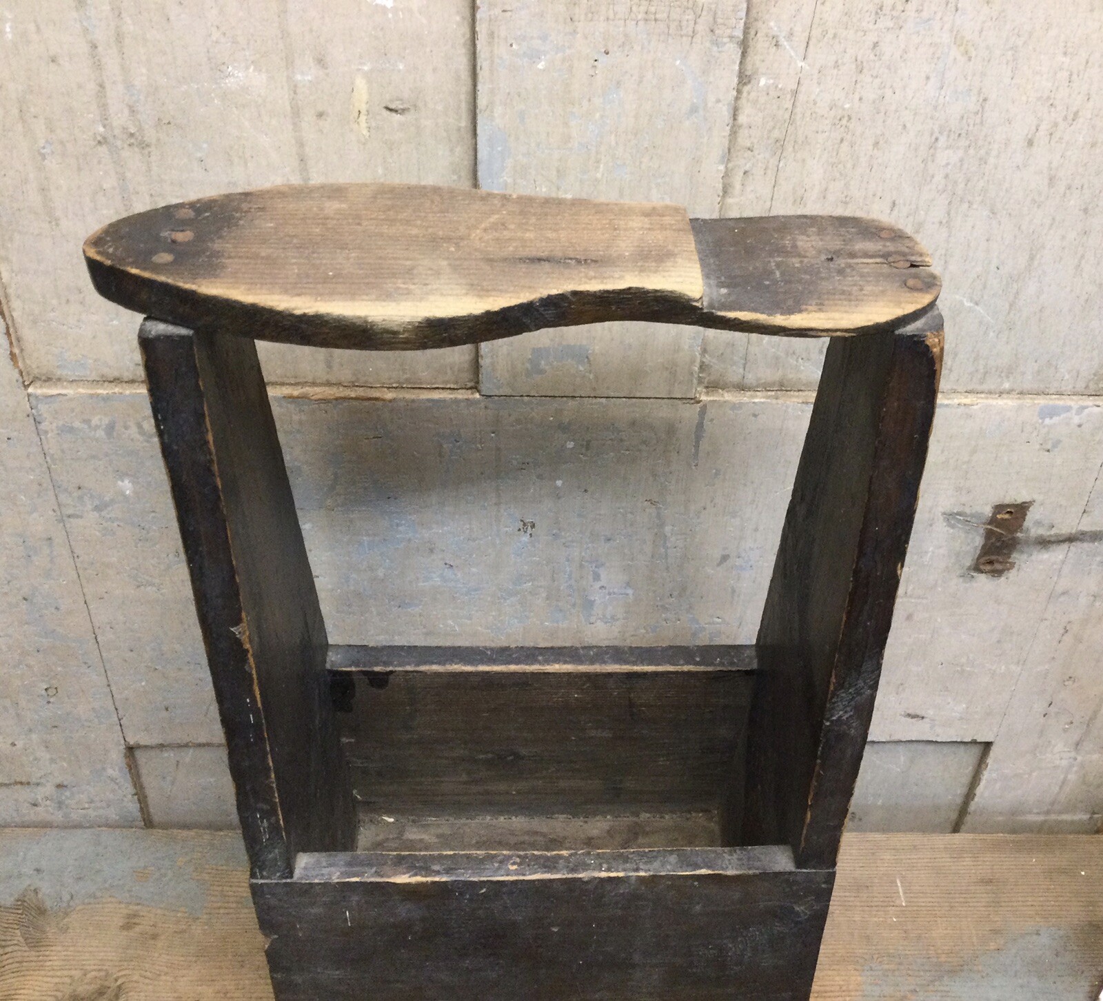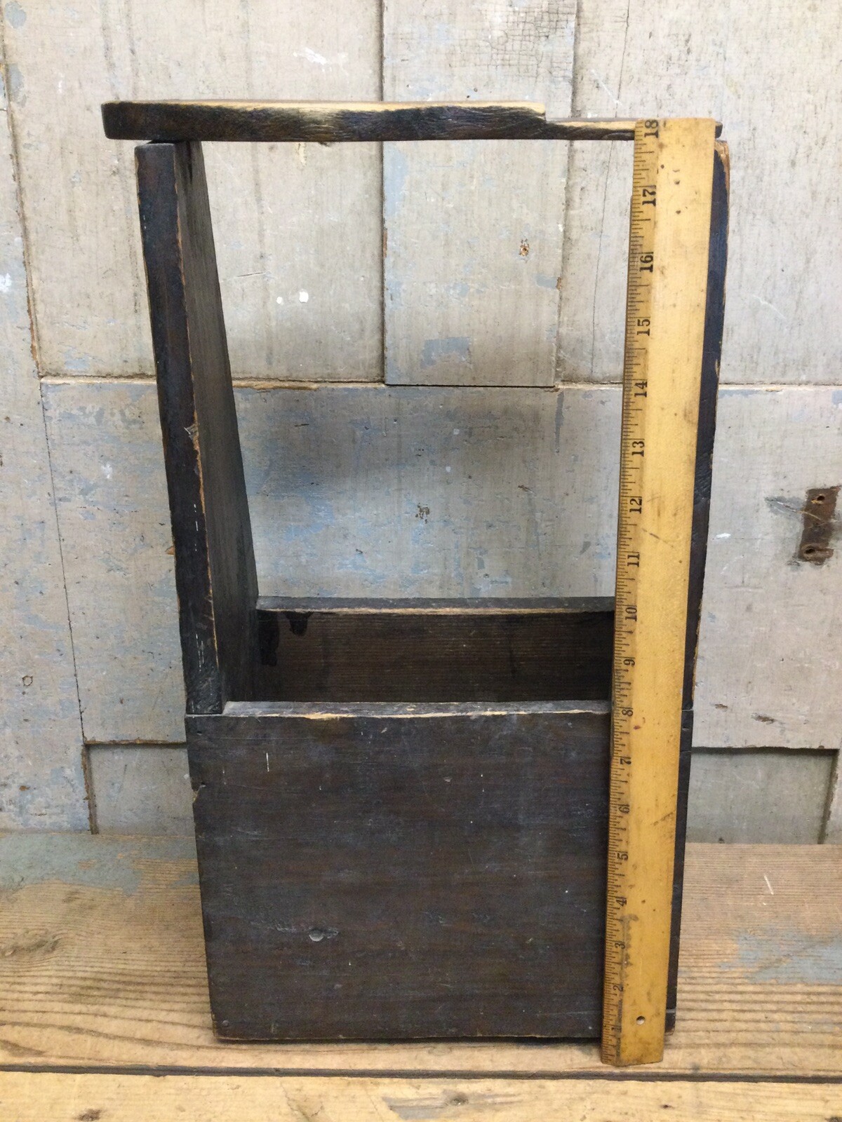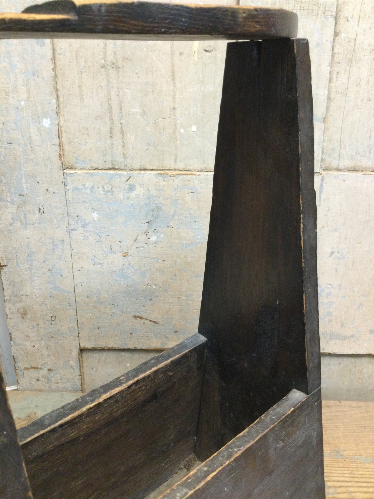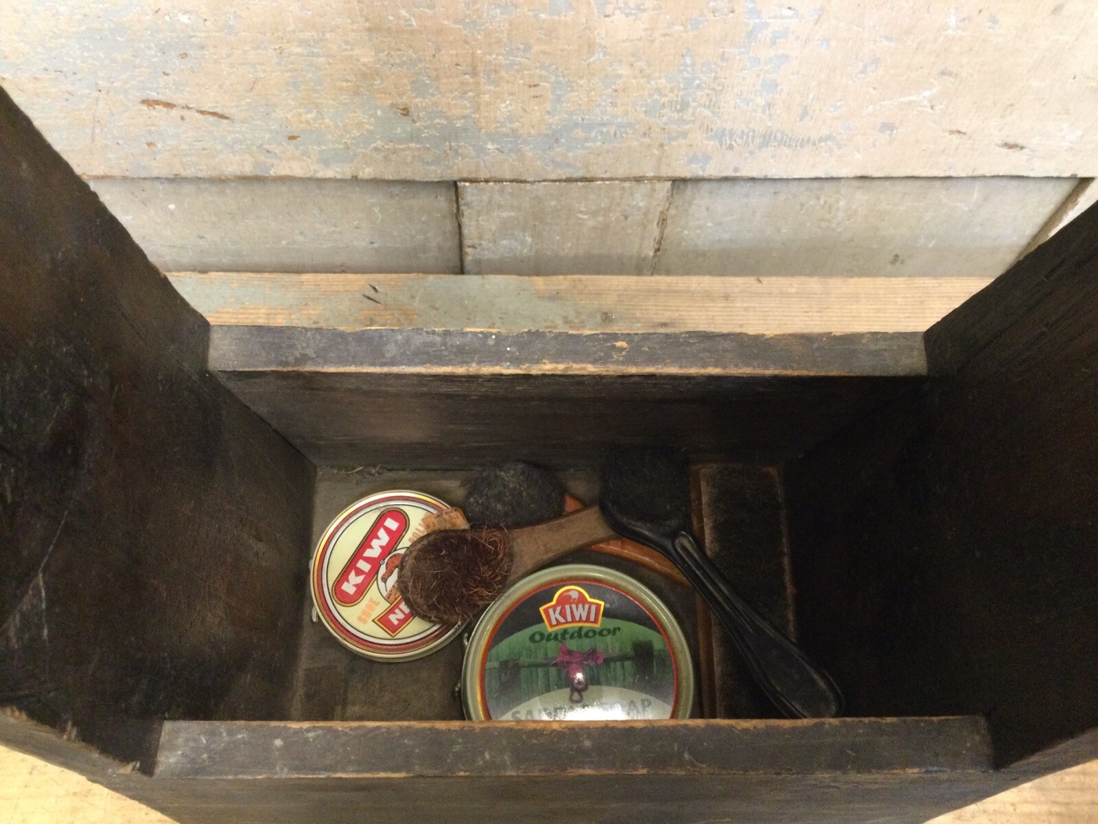 Vintage Handmade Primitive Wooden Shoe Shine Box w/ Footrest Polish Brushes
