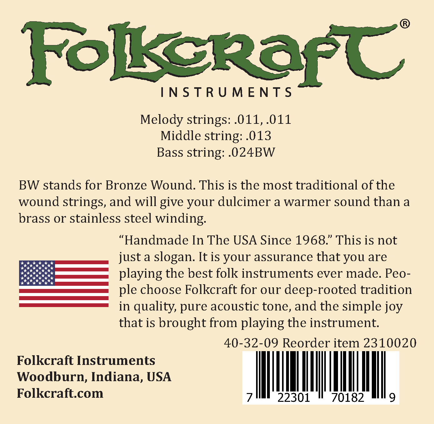Folkcraft Mountain Dulcimer String Set, Loop Ends .011 .011 .013 .024BW