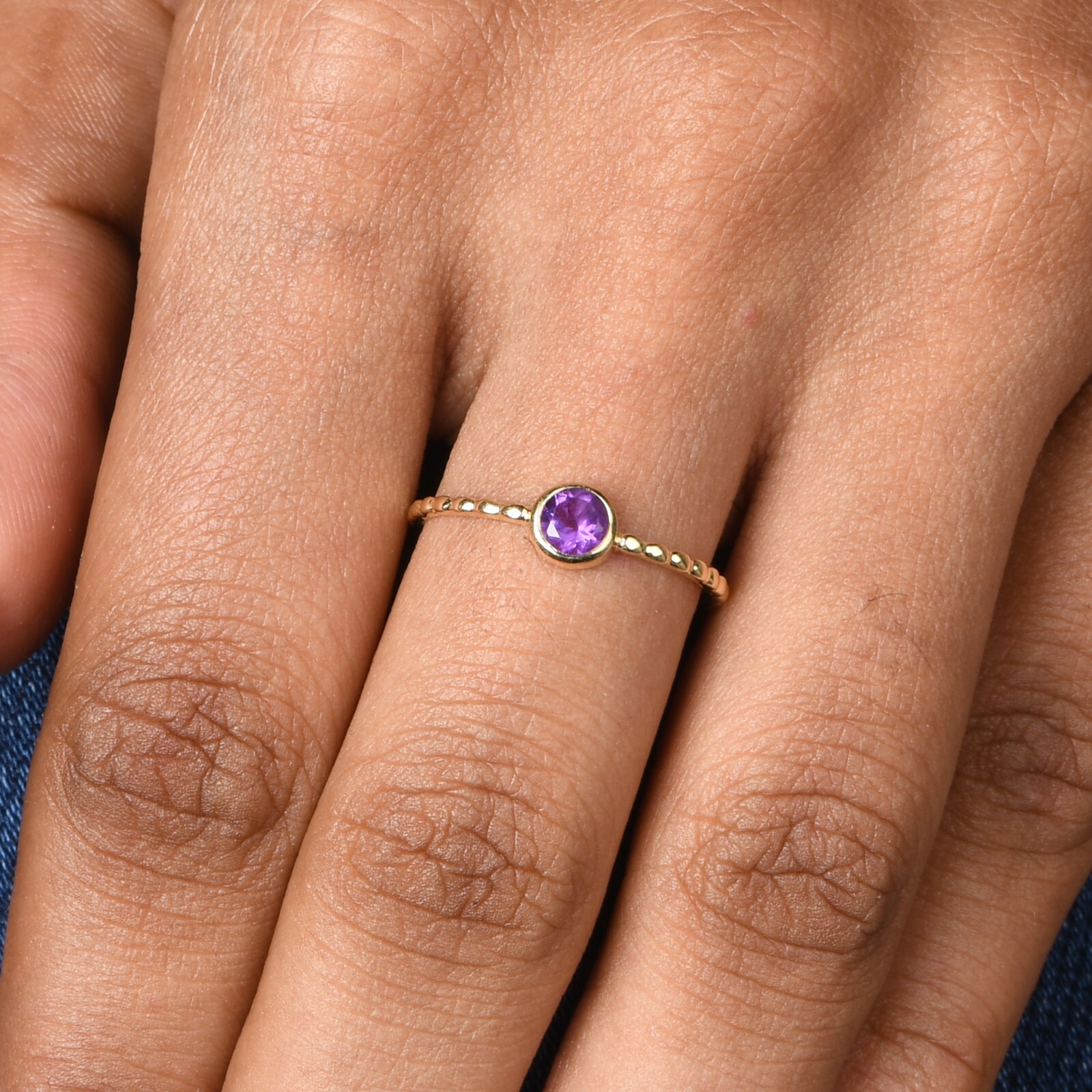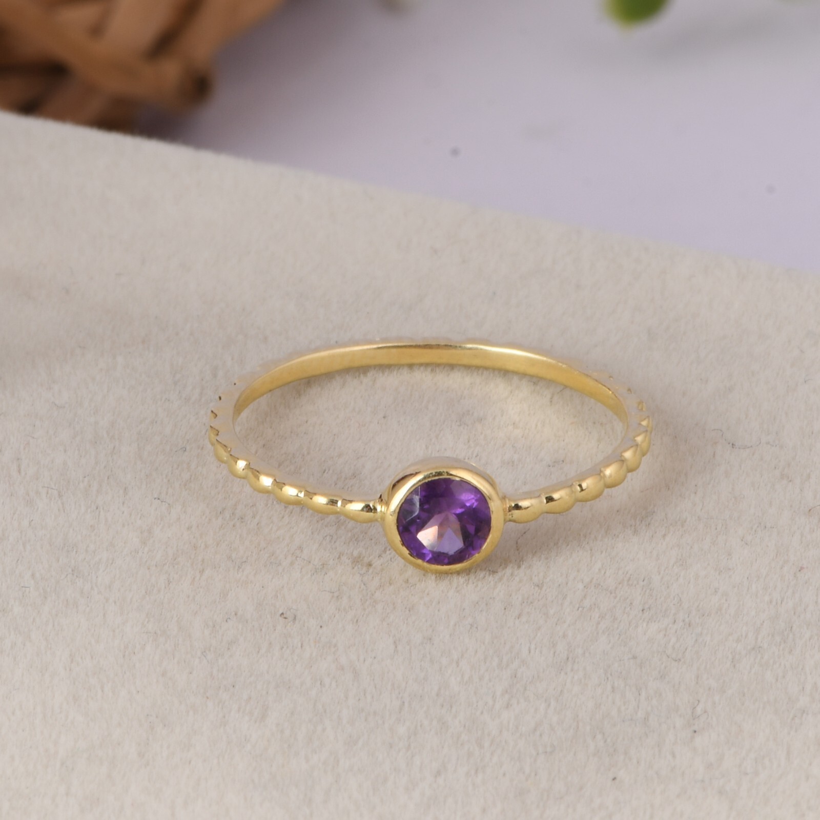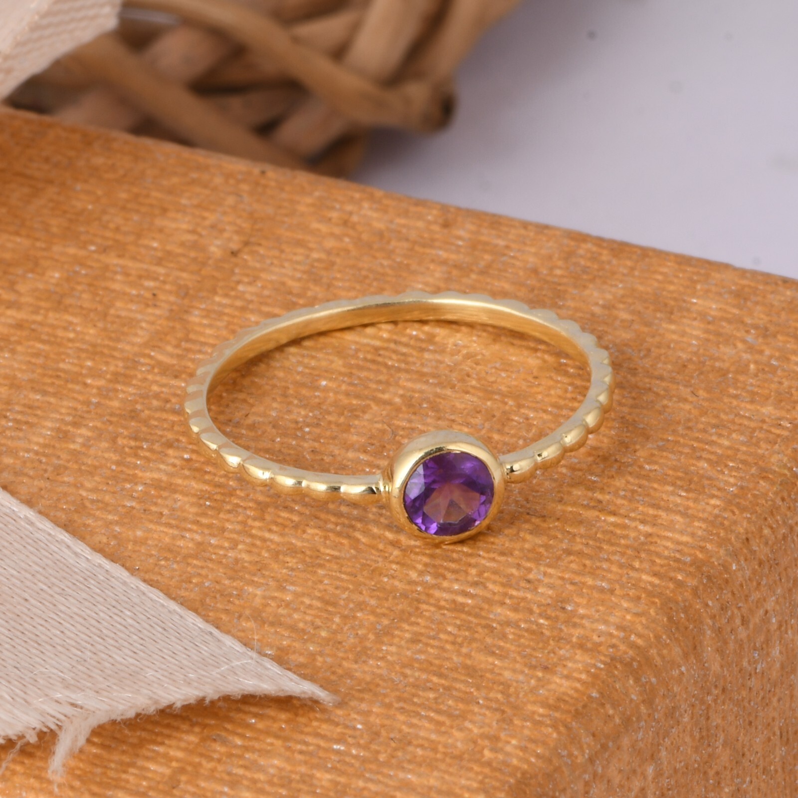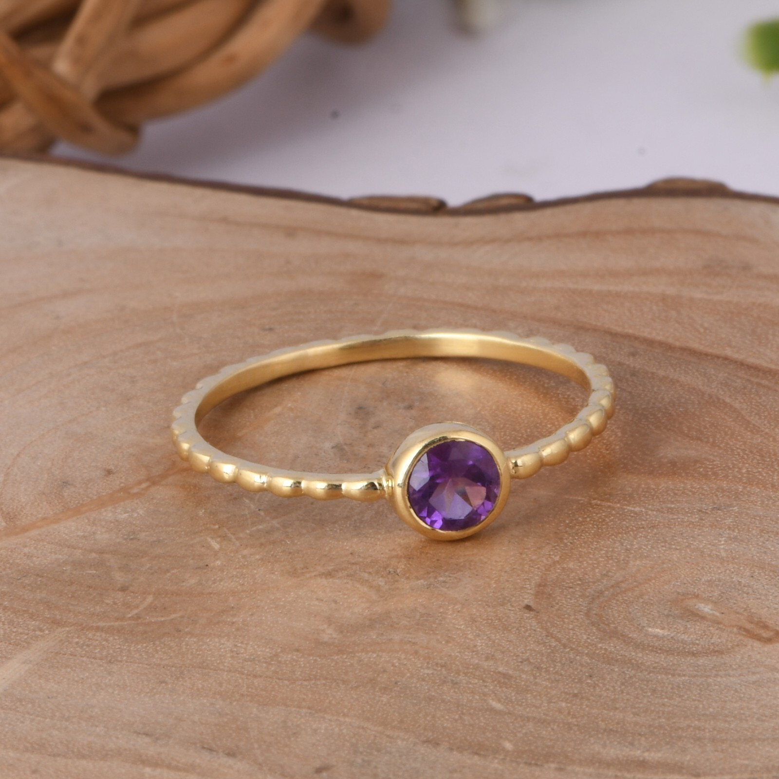 18k Gold Plated Dotted Band Ring With Amethyst Gemstone Ring For Birthday Gift