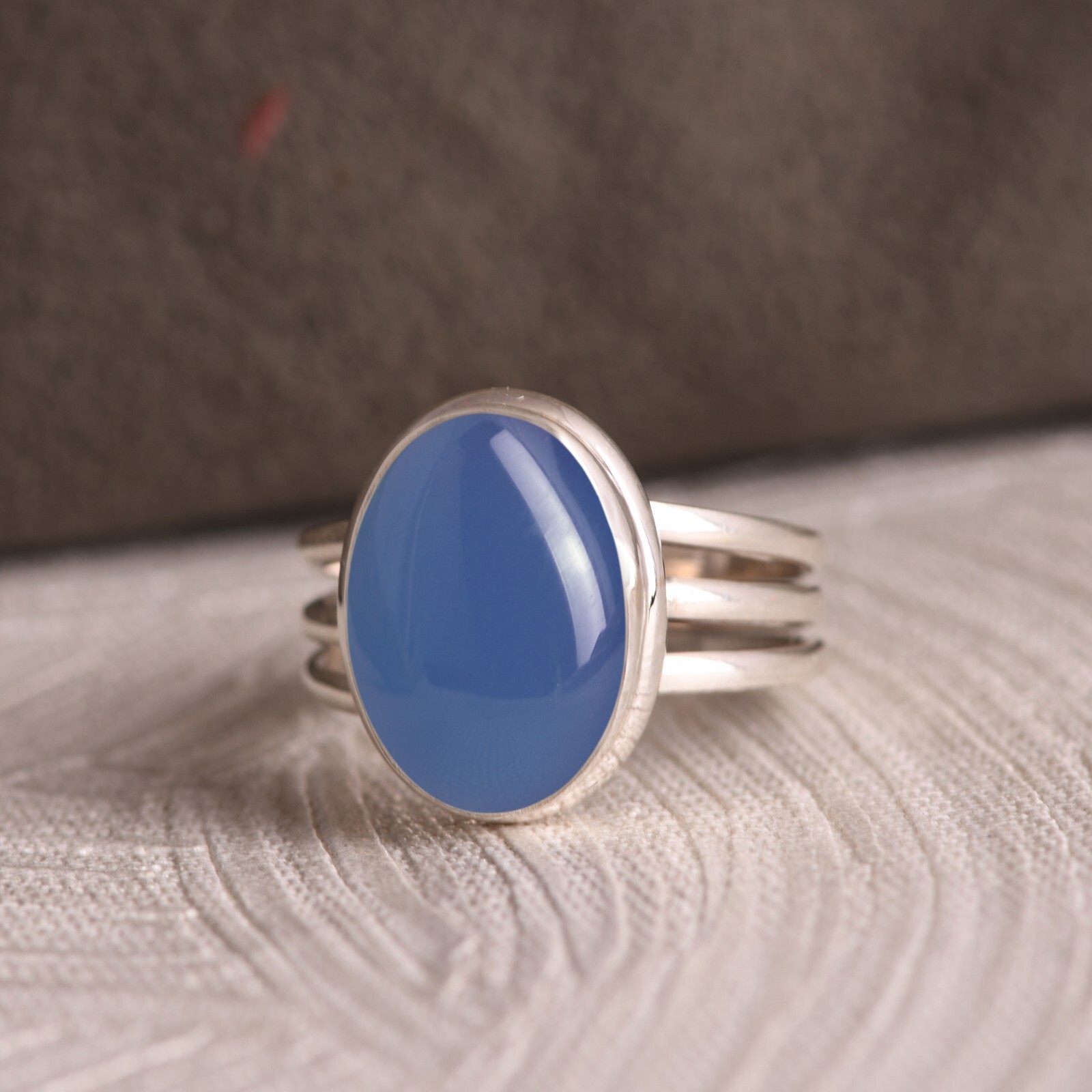 Genuine Oval Cut Blue Chalcedony 925 Sterling Silver Ring For Occasionally Gift