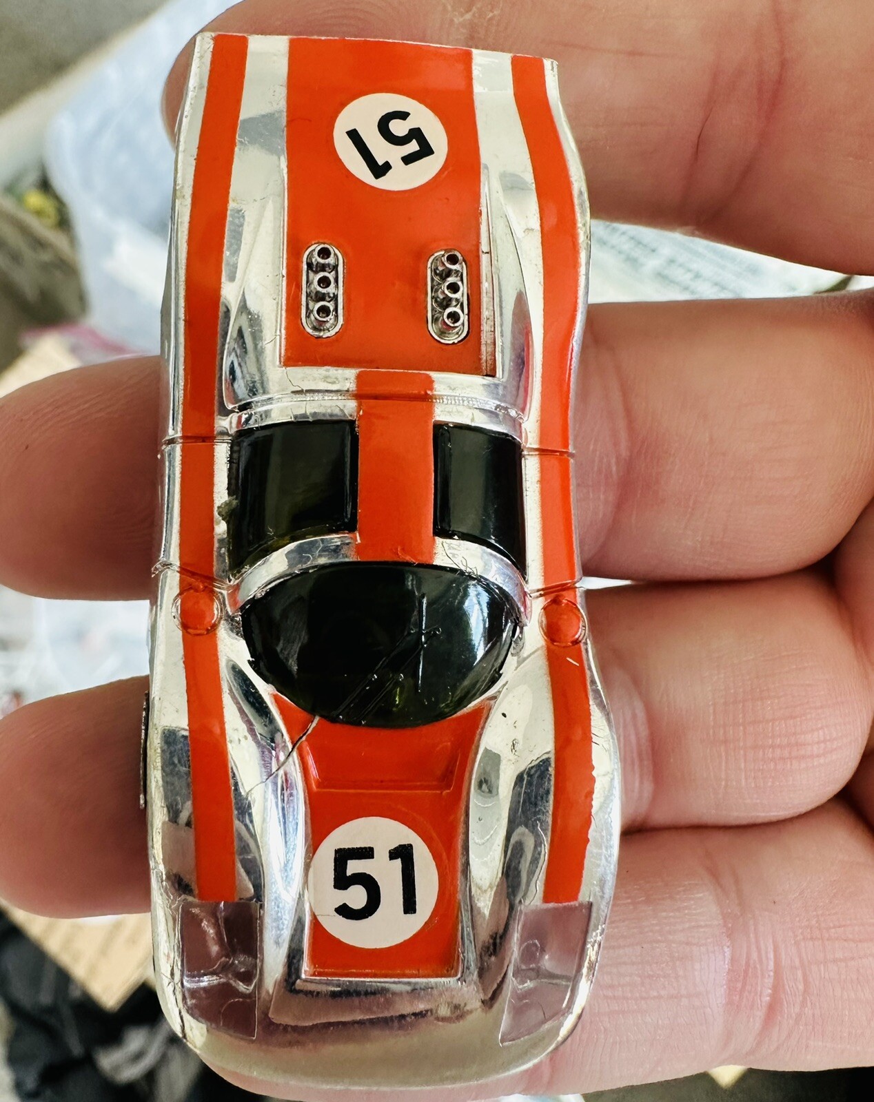 Vintage Tyco Slot Car Porsche 908 51 Orange Chrome Orginal Curve Hugger Chassis
