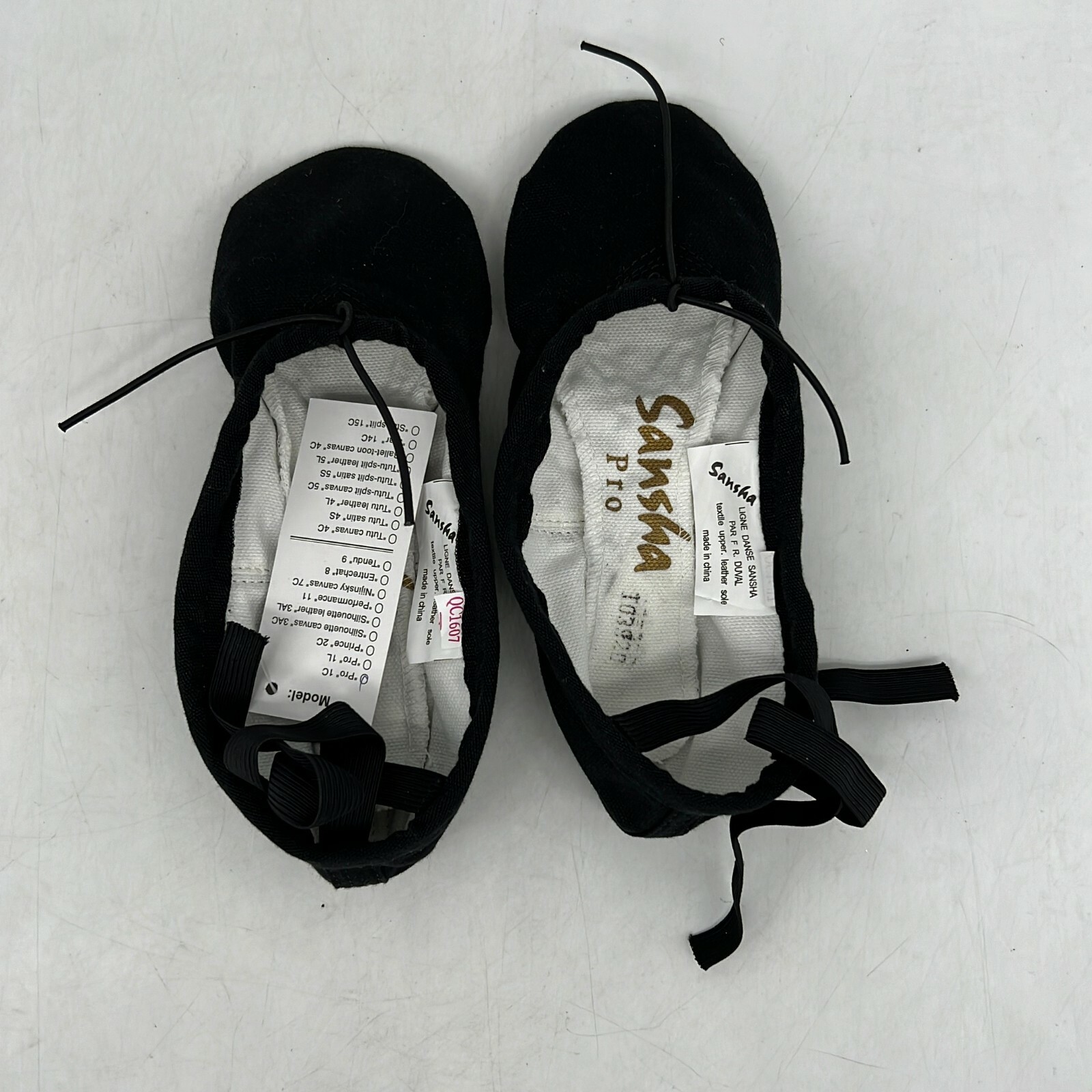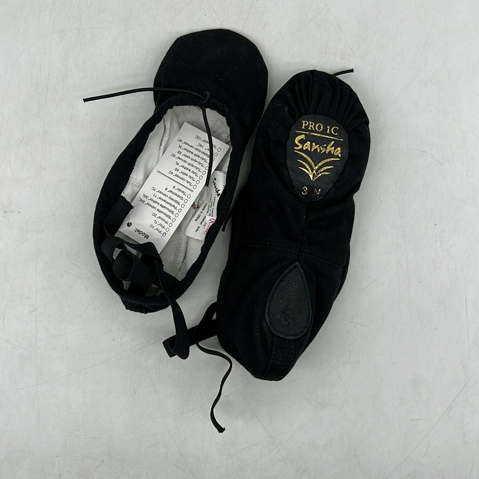 Sansha Pro Womens Round Toe Demi Pointe Canvas Black Soft Ballet Shoes Size 3 N