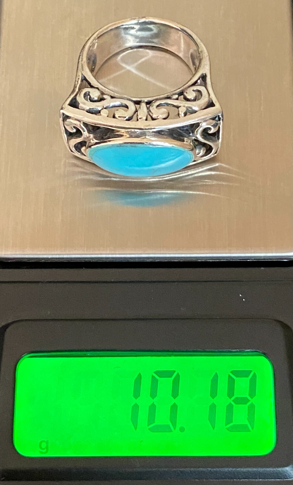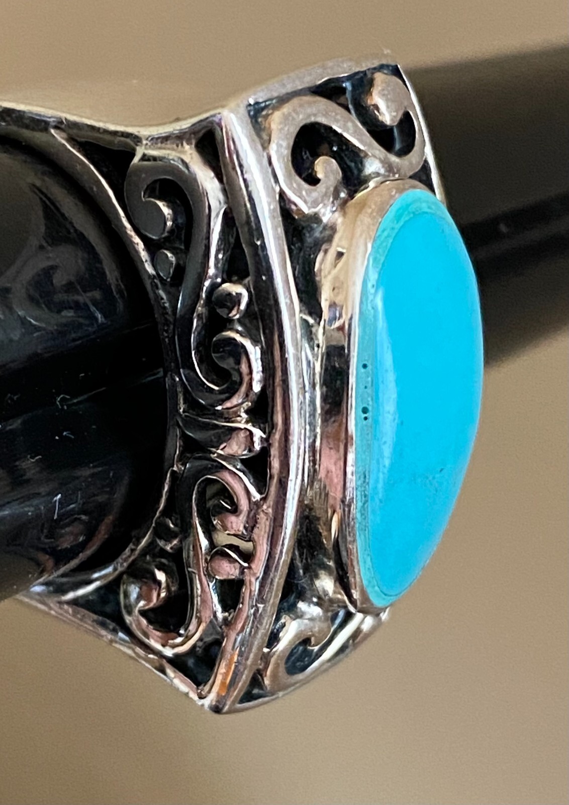 FILIGREE DESIGN TURQUOISE SIZE 6 STERLING .925 SILVER RING 10.18 GRAMS X4