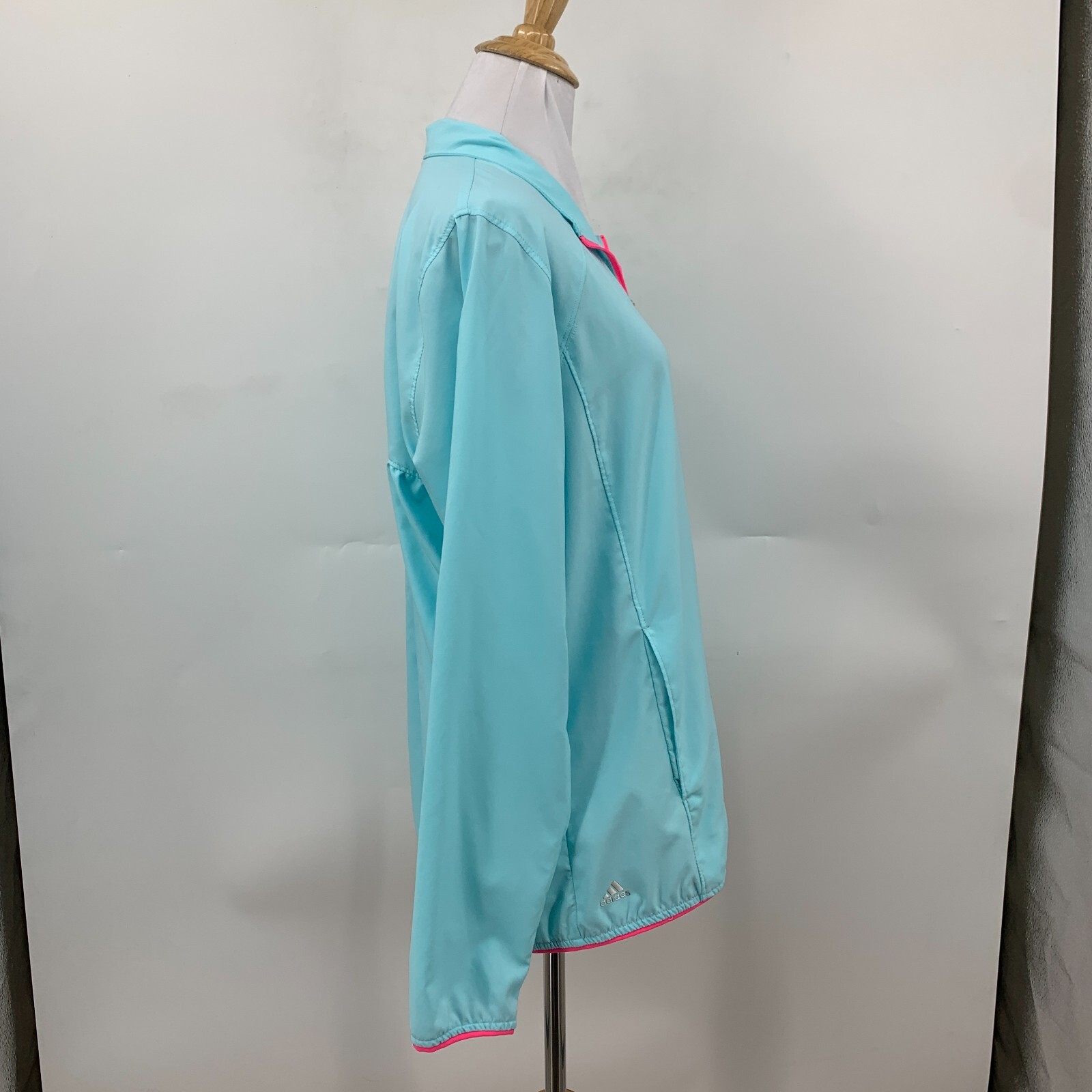 Adidas Golf Thin Windbreaker Jacket Womens L Large Aqua Pink Full Zip Pockets