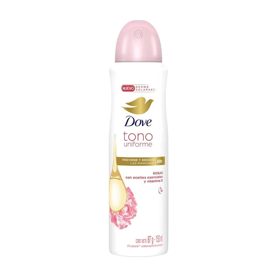 Antitranspirante Dove tono uniforme en aerosol rosas para dama 150 ml