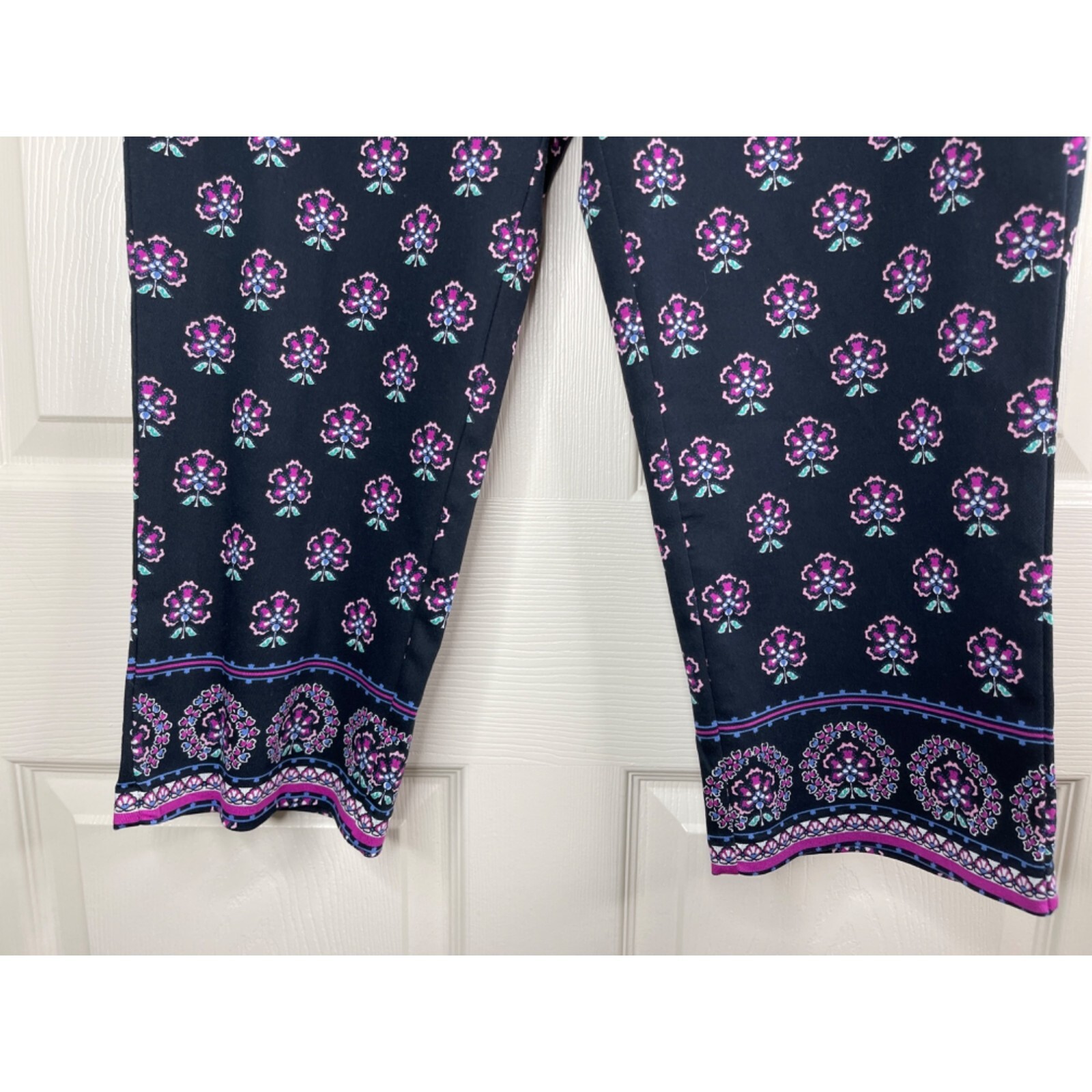 Croft Barrow Capri Pants Stretch Black Purple NWT Women Size Ten 10 Straight Leg