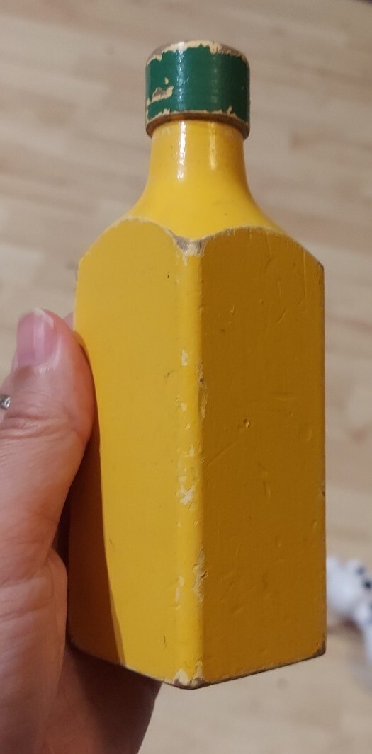Vintage Wooden Pretend Play orange juice bottled painted