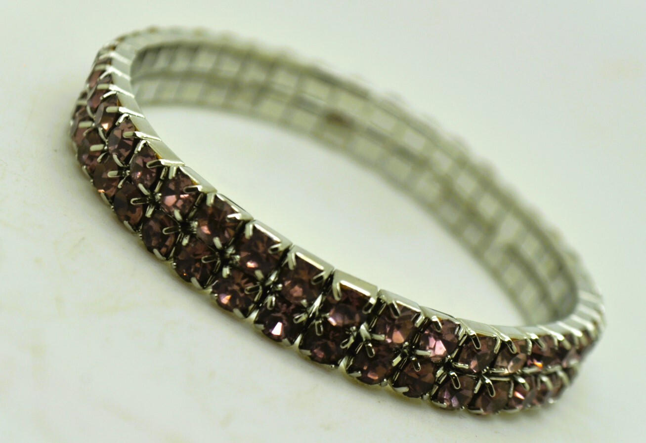 Lt. purple color Rhinestone rhodium plated 2 line Stretch Bracelets Wedding