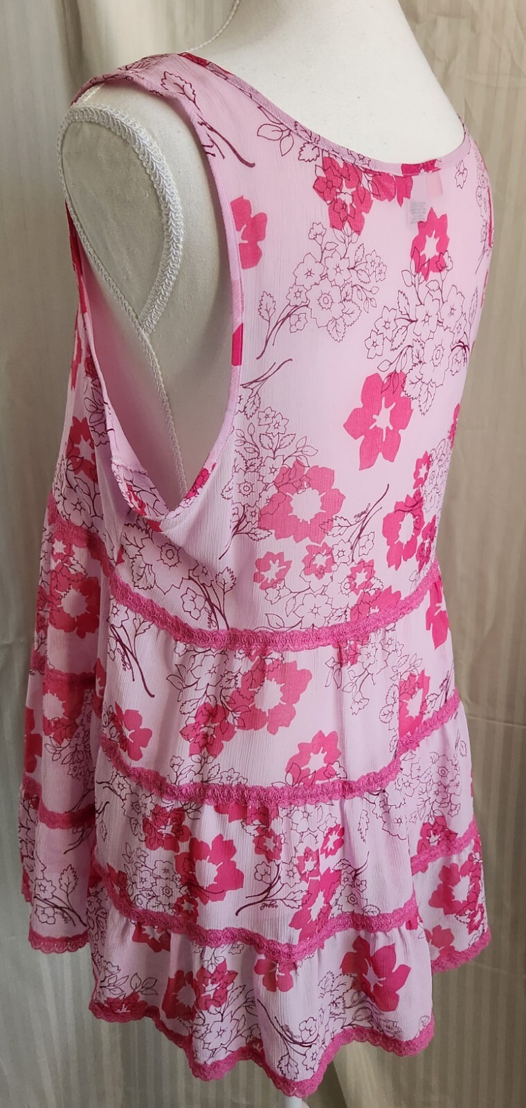 SZ L VICTORIA'S SECRET ANGELS Babydoll Lace Tank Pullover Bow Sheer Nighty Pink