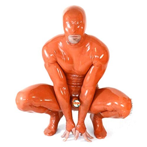 Latex gummi catsuit full bodysuit penis sheath mesh eyes back zip 0.4mm