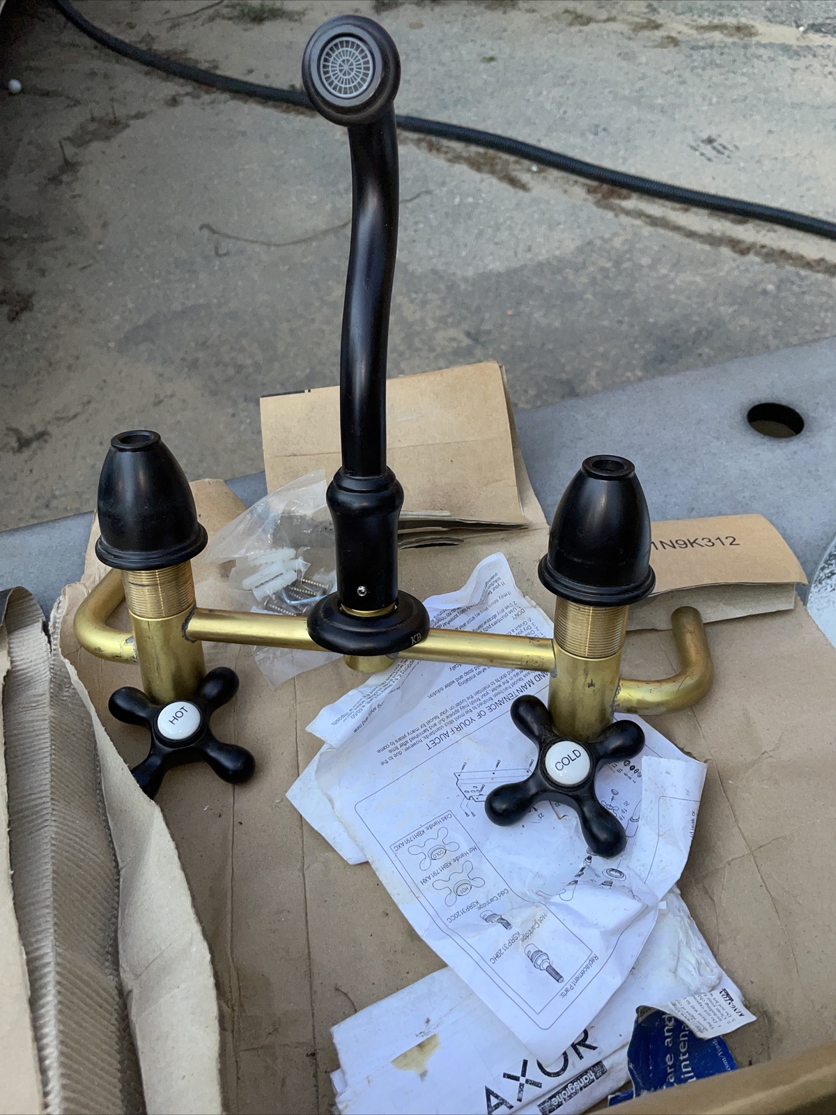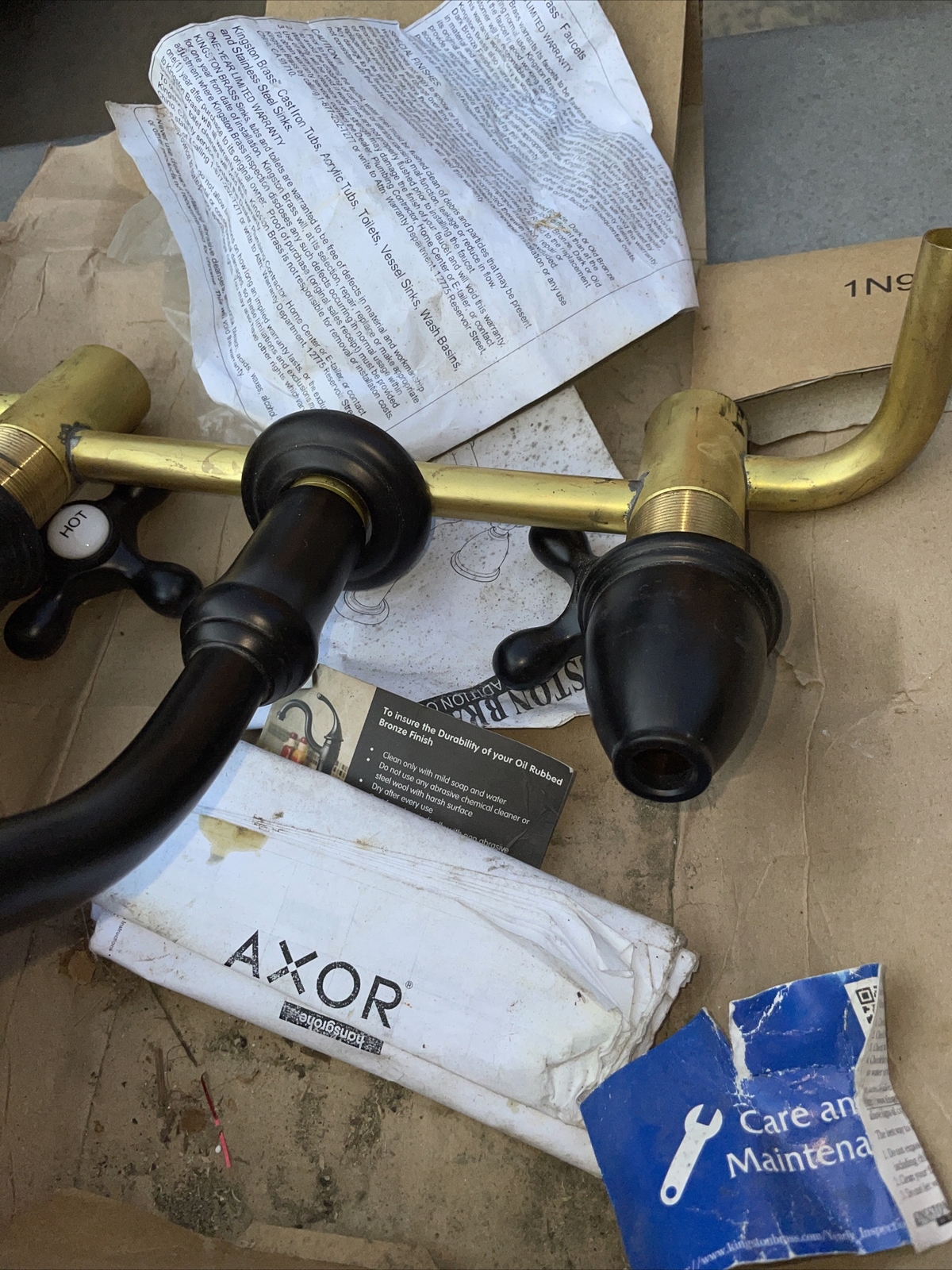 как выглядит Kingston Brass KS312.AX Vintage 1.2 GPM Wall Mounted Widespread - Bronze фото