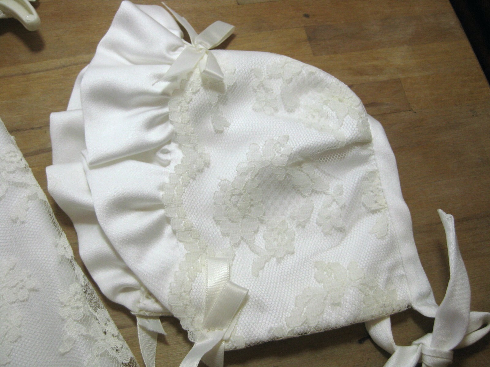как выглядит Hand Made Baby Long Christening Dress Gown W/Matching Cap Vintage Off-White фото