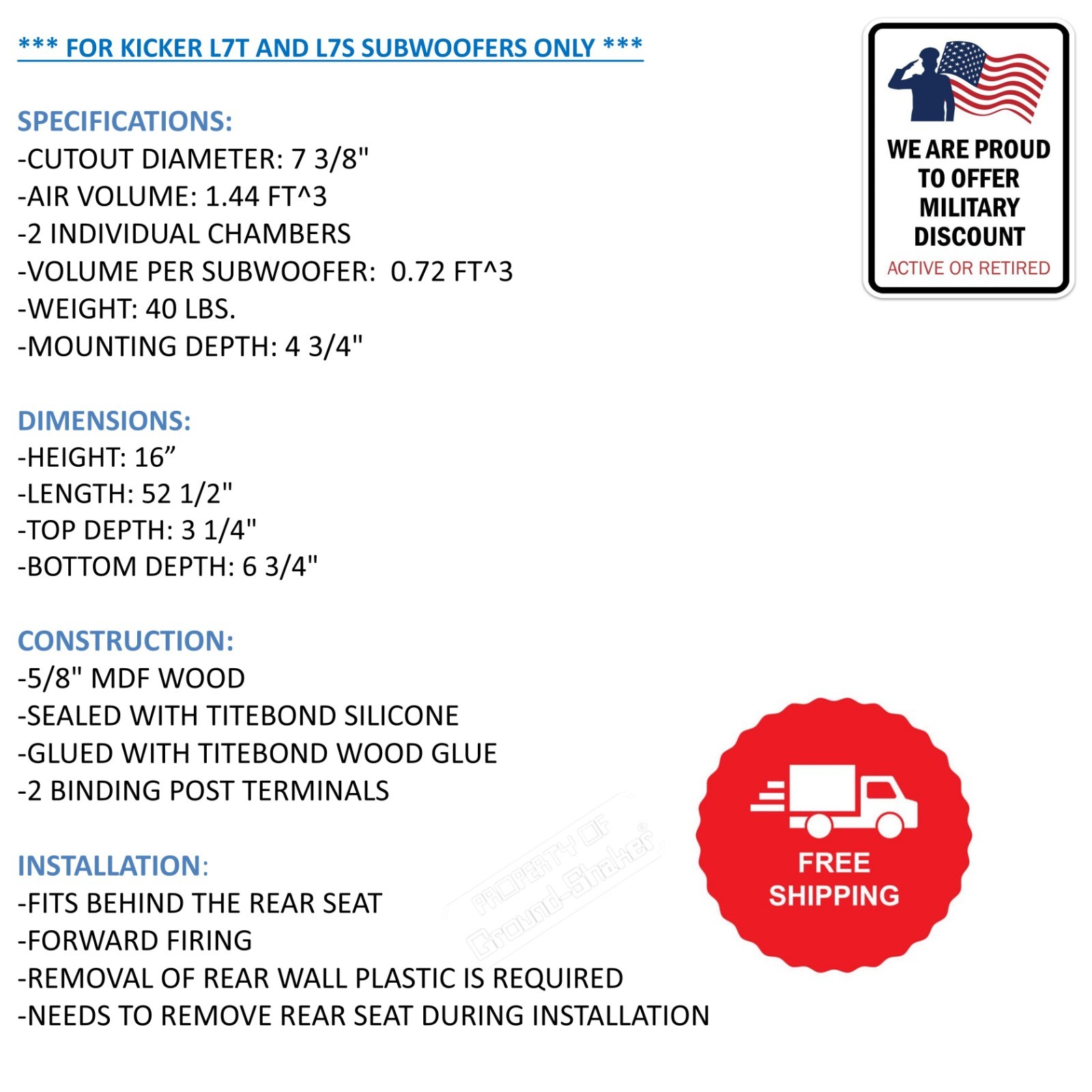 Toyota Tundra Crew Max 2016 8 Sub Box Subwoofer Enclosure Kicker L7T L7S