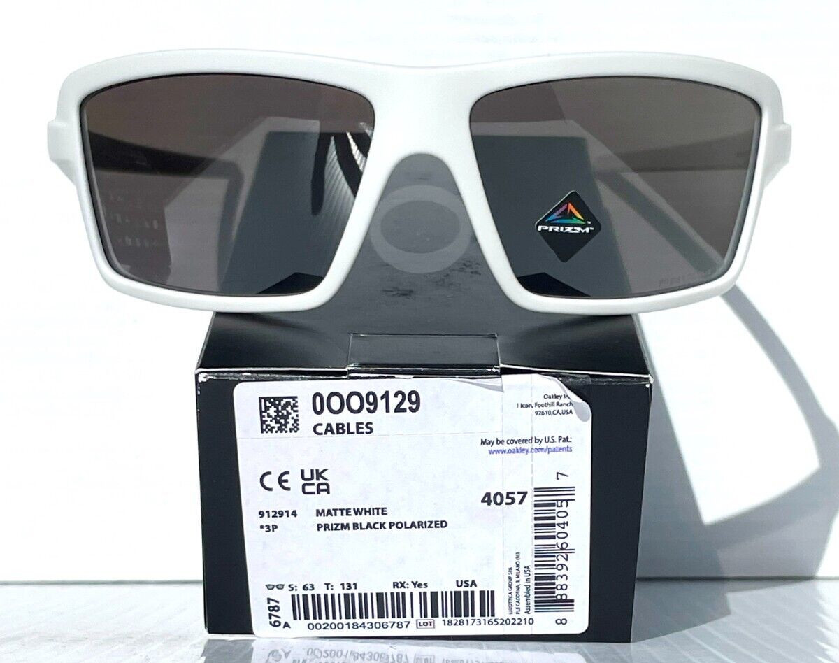 NEW Oakley CABLES Matte White PRIZM BLACK POLARIZED Lens Sunglass 9129-14