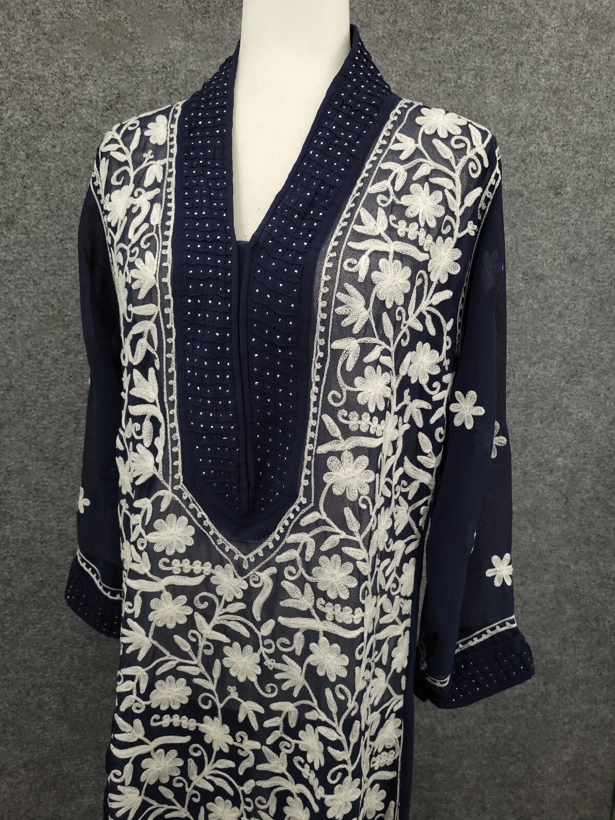 как выглядит Womens Kurta Kurti Tunic Medium Embroidered Blue Sheer Bollywood Indian Pakistan фото