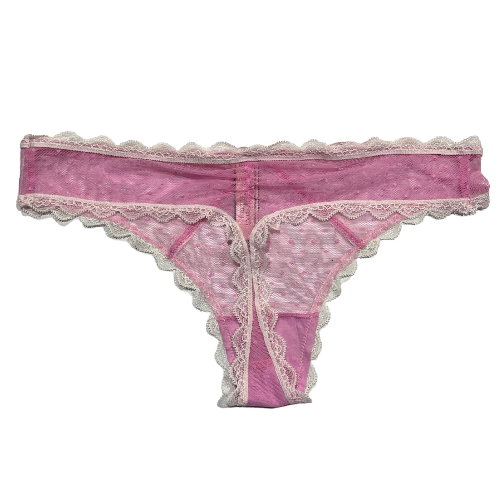NWT VICTORIA'S SECRET Thong Pantie Sz M-L-XL Pink Polka Dot Mesh Lace