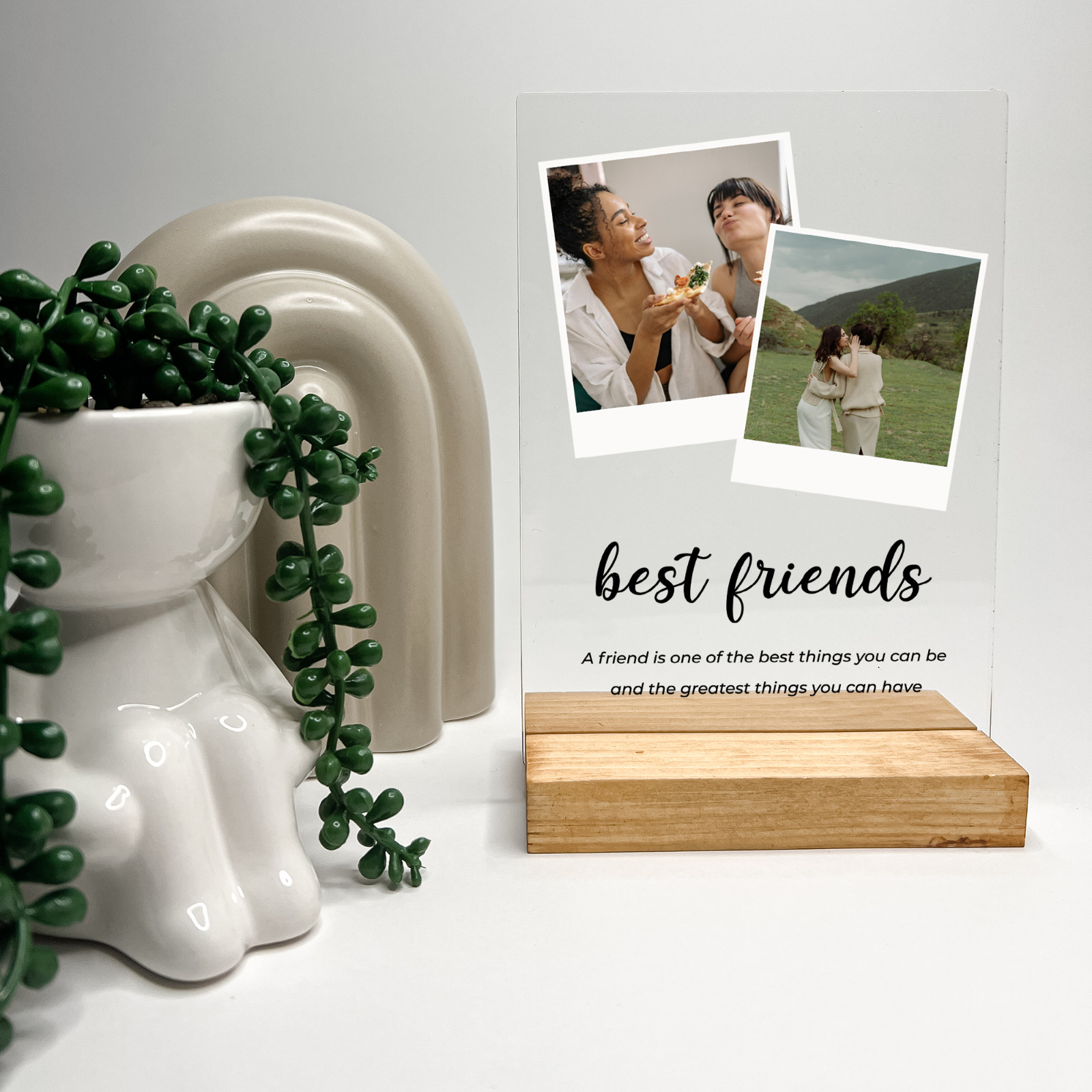 Personalized 2 Images Custom Collage Acrylic Photo Frame, Wood Base, Friend Gift
